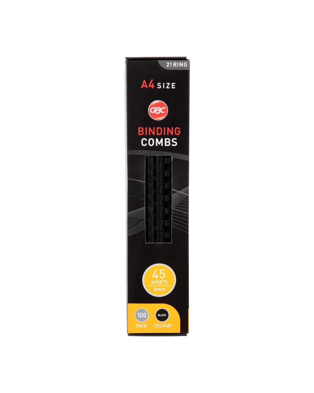 Sold by OfficeworksGBC Binding Comb 21 Loop Plastic 8mm Black 100 Pack
