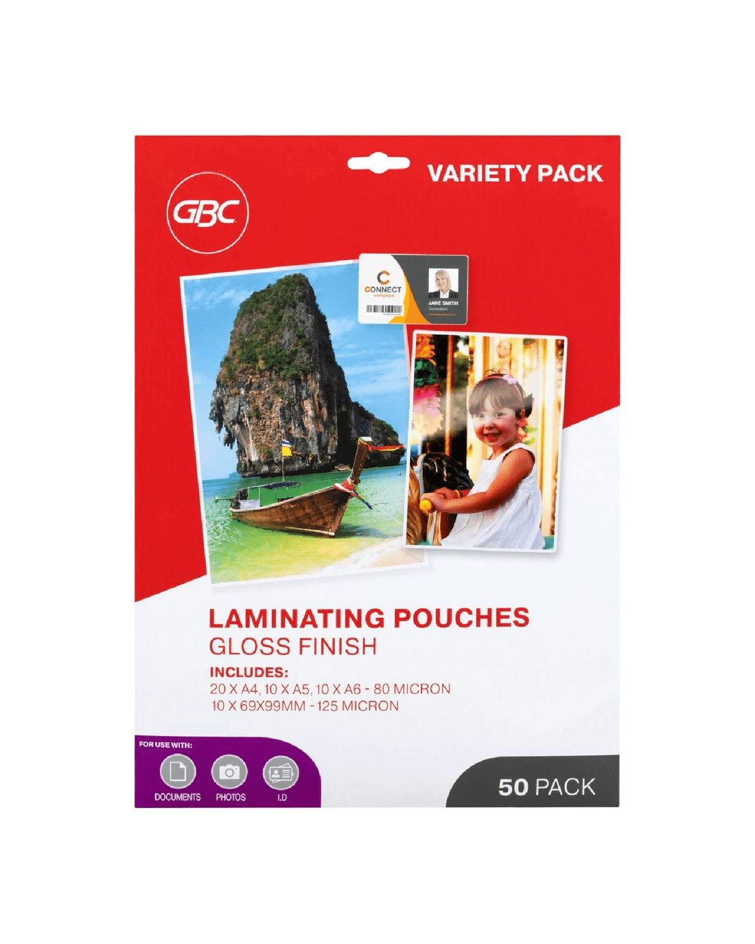 GBC Laminating Pouches preserve original documents and photos in a quality plastic, waterproof film keeping them clean and prolonging their lifespan. This multipack contains a mix of the most popular pouch sizes and thicknesses. Each pouch provides a glossy finish which looks great and makes the document more visually appealing.