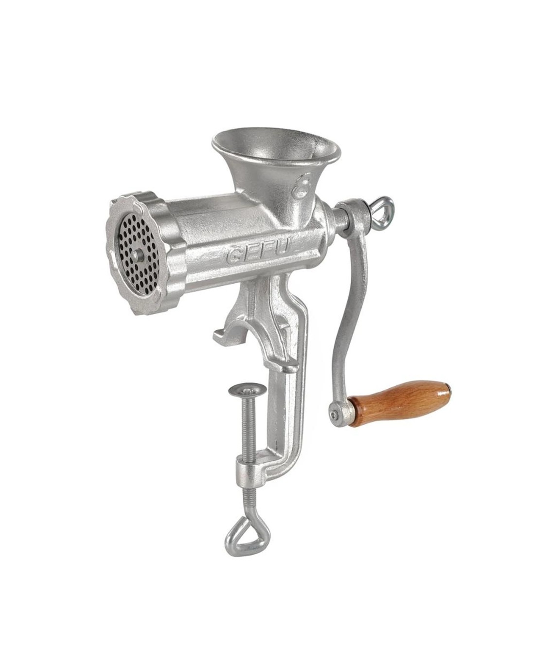 The traditional machine for making minced meat and steak tartar is more versatile than you may think. You know you can use it for making fancy biscuits at Christmas but it will also turn out exquisite cookies and other aromatic delights from the oven at other seasons of the year. The “nouvelle cuisine” in particular with exciting vegetable dishes makes your mincer more creative. (some interesting suggestions for cookies and vegetable dishes are enclosed in the pack.) You will soon notice just how important the quality of a mincer is when you use it. Firmly located, safely held and strongly made for easy and effective mincing. The robust GEFU quality with stainless steel perforated discs of 4,5 mm and stainless steel cutters will not let you down.