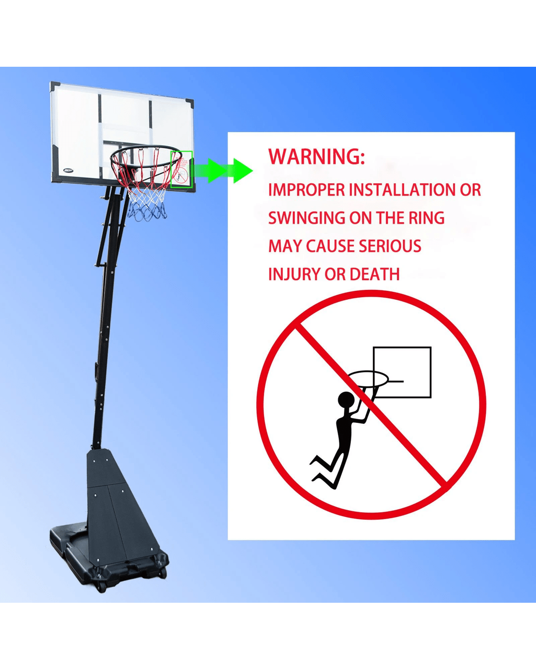 Genki Adjustable Height Portable Basketball Hoop System Backyard - Multi
