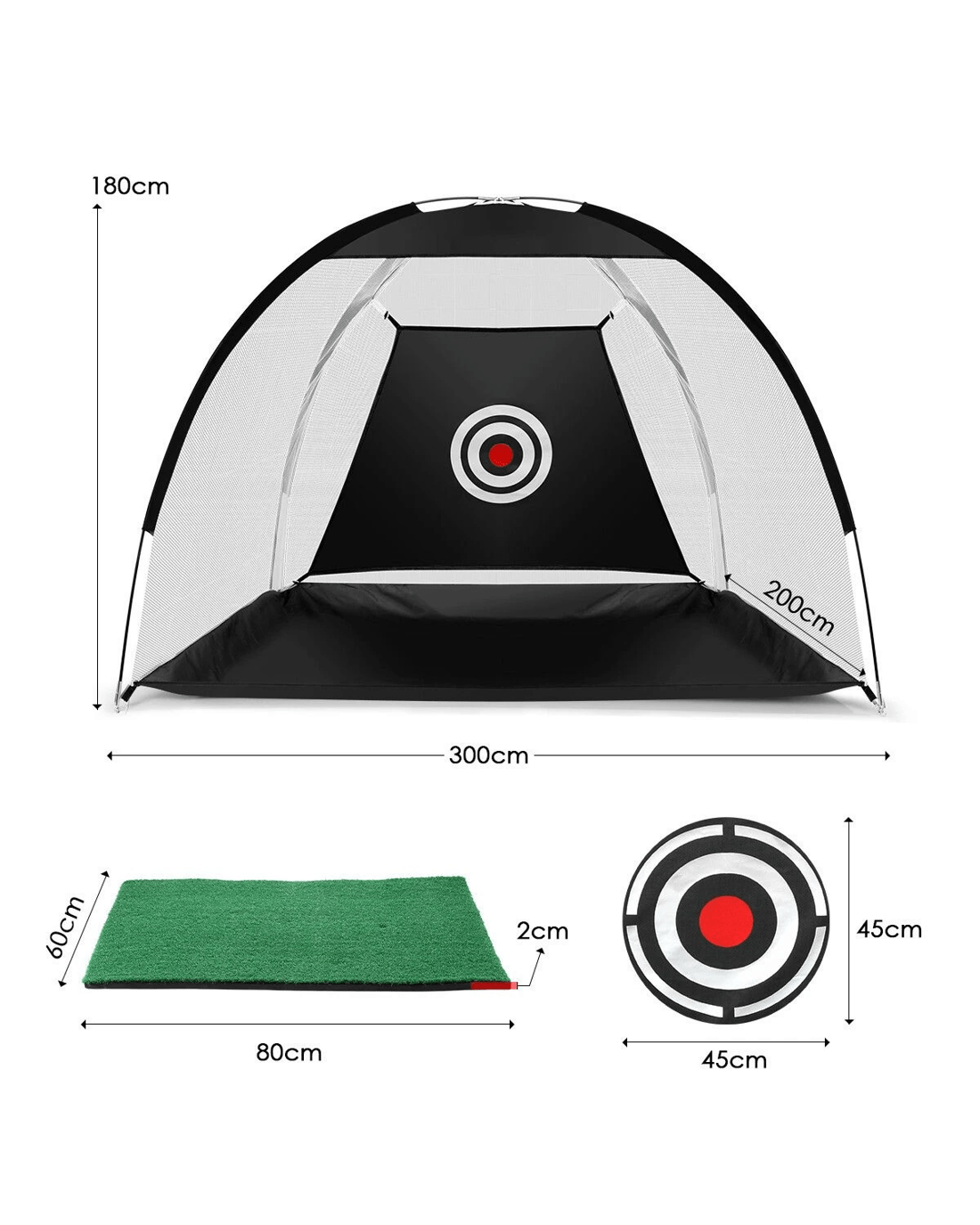 - Space-saving for Indoors and Outdoors: Measuring 3m x 1.8m x 2m, the golf kit is large enough to entertain and practice, and yet is space-saving enough to fit your backyard, living room, basement, garage and more.