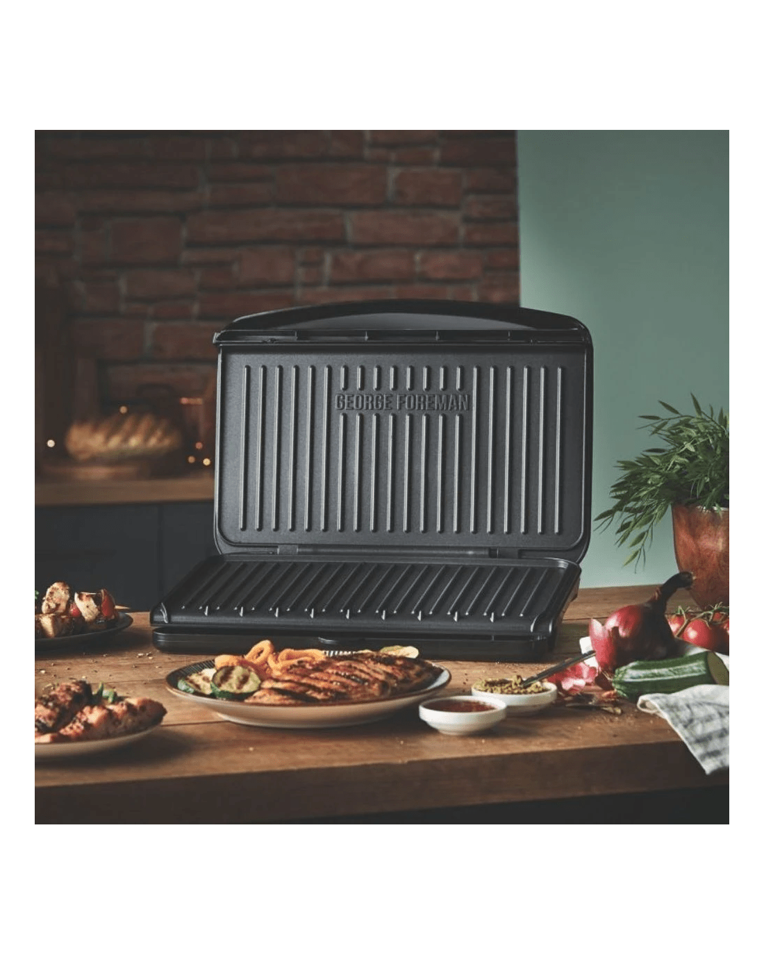 Craft delicious and healthier meals at home with this large George Foreman Fit Grill. Featuring fast heat up and a grill surface area that cooks up to 8 servings, feeding the family in a matter of minutes is simple. Easy-to-clean non-stick plates means there is less need for oil and butter, meaning you can serve grilled meats, vegetables, toasted sandwiches and so much more minus the excess fat. A clip-on drip tray collects food residue and the adjustable rear foot lets you adjust the grill for either flat or angled cooking. This George Foreman Large Fit Grill also stores away neatly with its vertical storage mechanism, saving you space in your kitchen cupboard. For quick, easy and healthier dining at home, you cant look past this George Foreman Fit Grill.