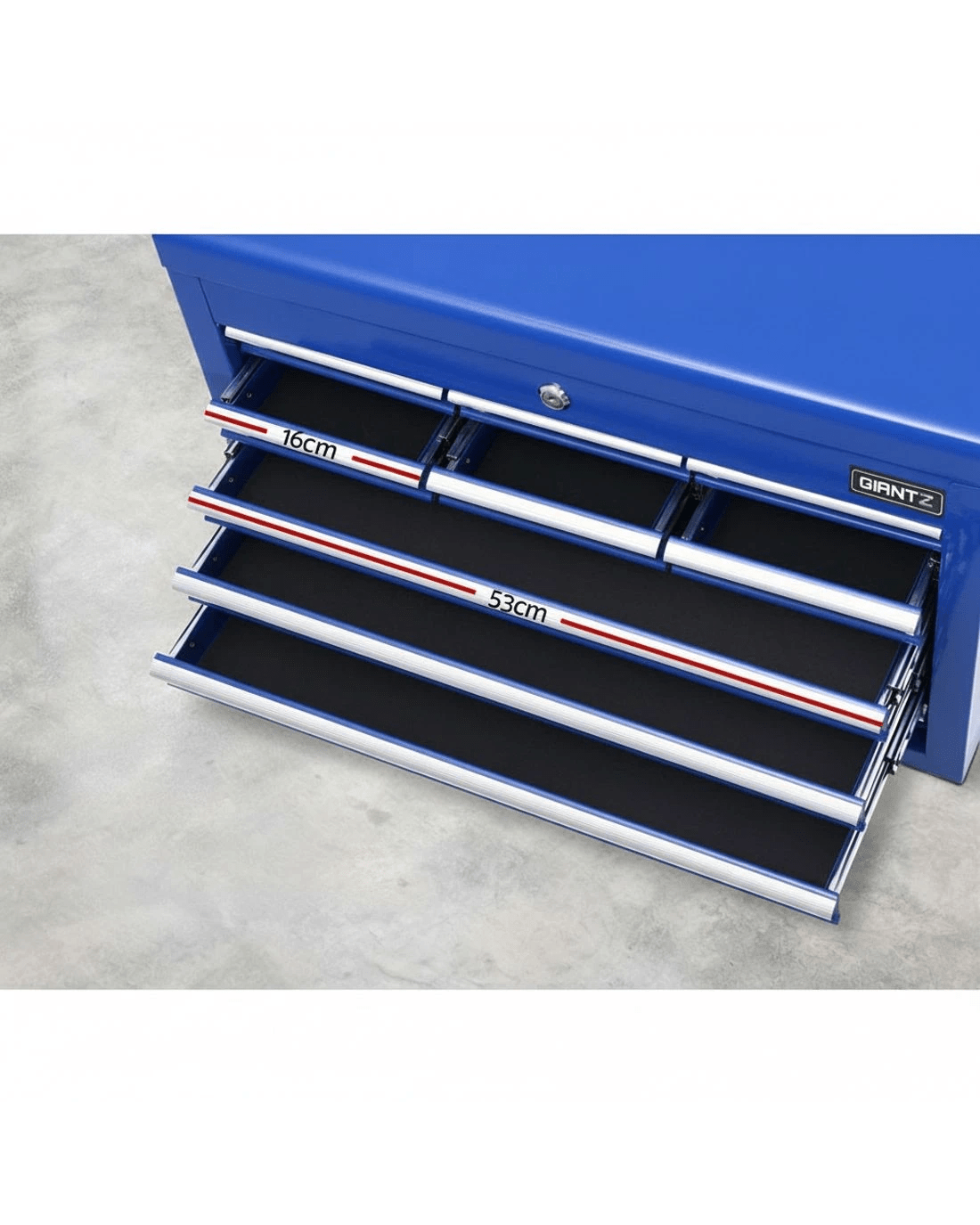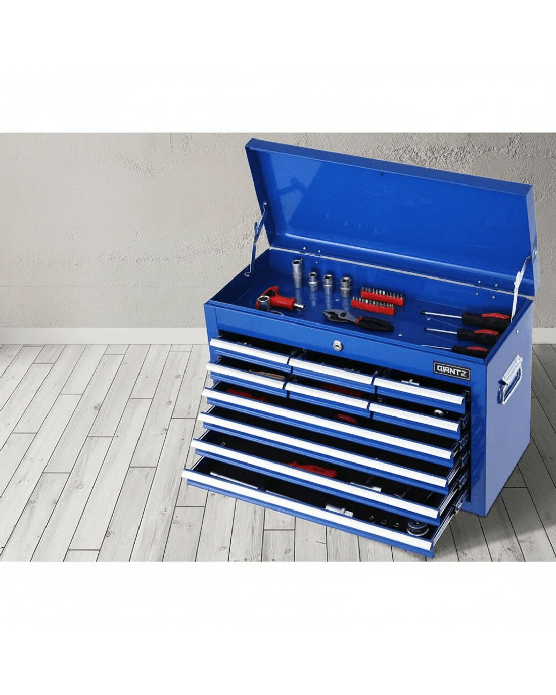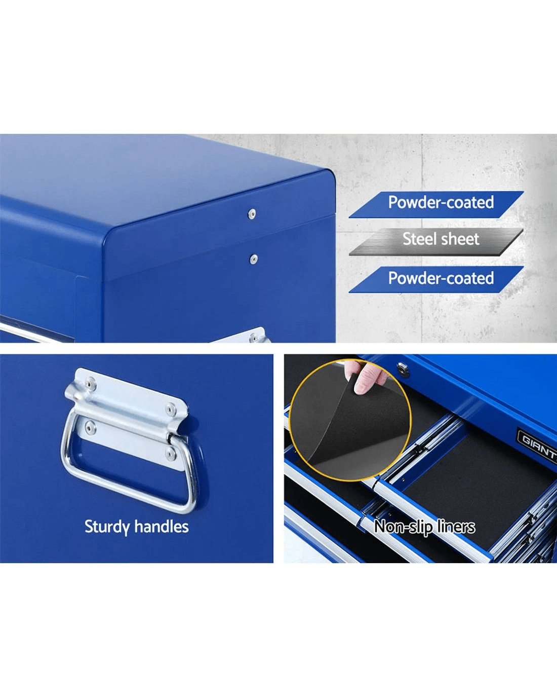 This robust, multi-drawer Gardeon Tool Chest is an essential for any workshop. Crafted from durable steel, it features smooth ball-bearing slides for easy access and a secure lock system for safety. Its spacious design includes varying drawer sizes to accommodate tools of all shapes, complete with non-slip liners. Sleek and functional, it's perfect for organizing and protecting your valuable tools.