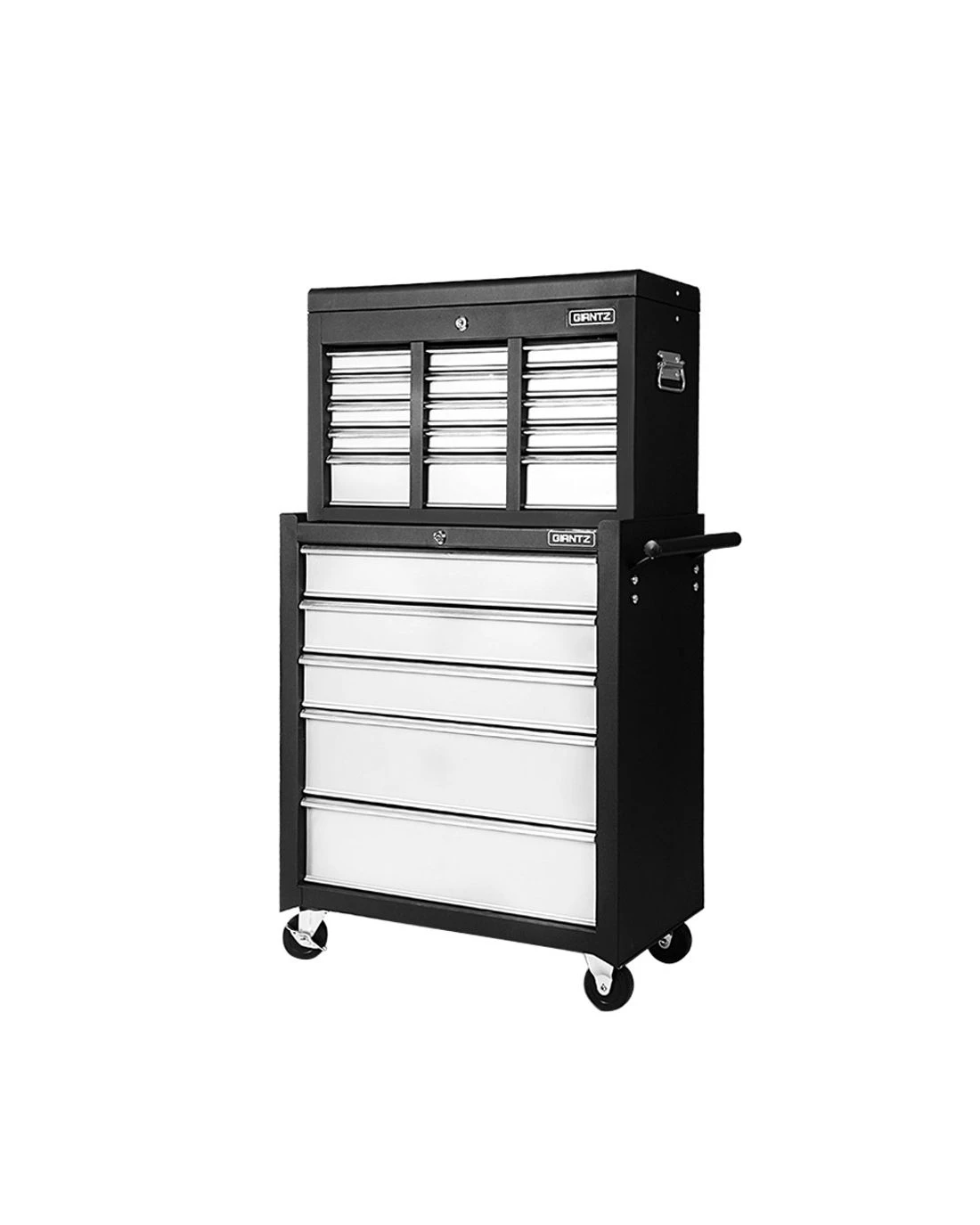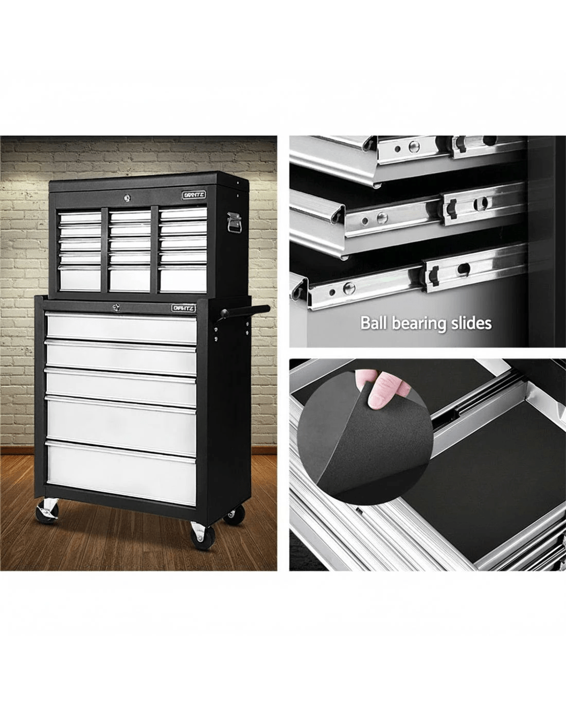 This robust, multi-drawer Gardeon Tool Trolley is an essential for any workshop. Crafted from durable steel, it features smooth ball-bearing slides for easy access and a secure lock system for safety. Its spacious design includes varying drawer sizes to accommodate tools of all shapes, complete with non-slip liners. The chest is also mounted on omni-directional castors with locakble front wheels, ensuring a smooth maneuverability and stable positioning. Sleek and functional, it's perfect for organizing and protecting your valuable tools.