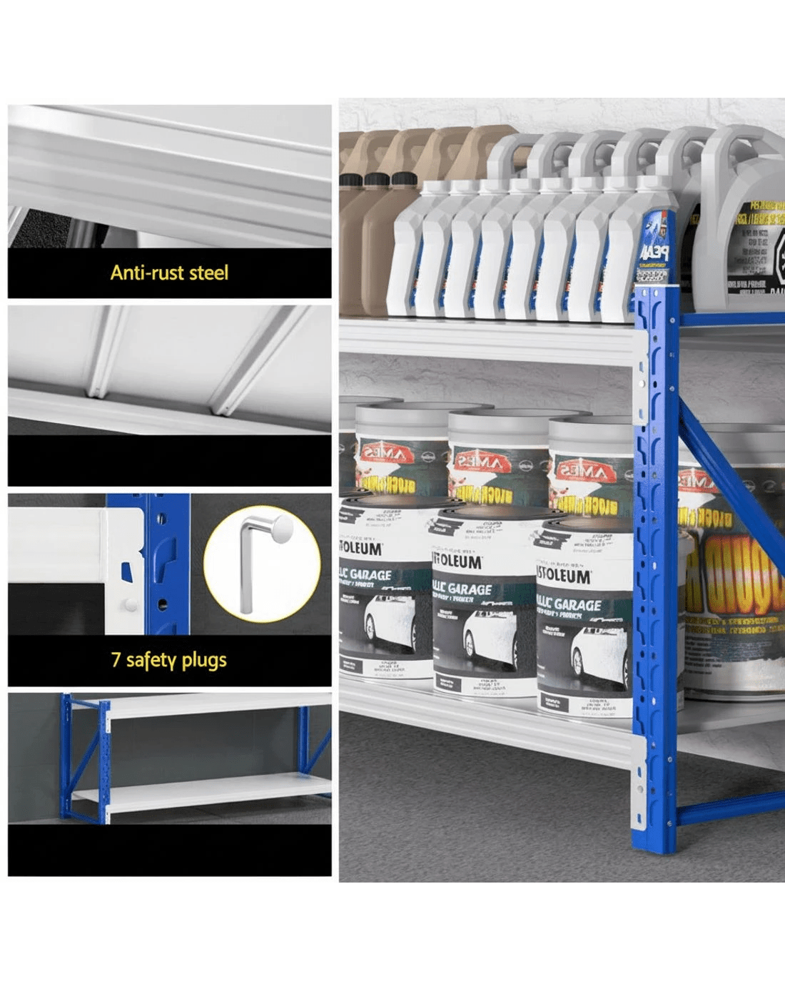 Introducing the Gardeon Storage Shelf Rack –Discover the ultimate garage shelving solution where heavy duty strength meets unparalleled flexibility, perfect for any workshop or workbench setup. Crafted from premium industrial grade steel, this robust warehouse racking unit delivers an impressive 200kg capacity per shelf level. Featuring adjustable shelf height settings and Z-bracing for enhanced stability, it adapts effortlessly to your diverse storage needs, keeping your tools and equipment organised. With its rust resistant coated finish and simple assembly process, transforming your space into an efficient workbench area has never been easier. Trust Gardeon for robust steel shelving that lasts.