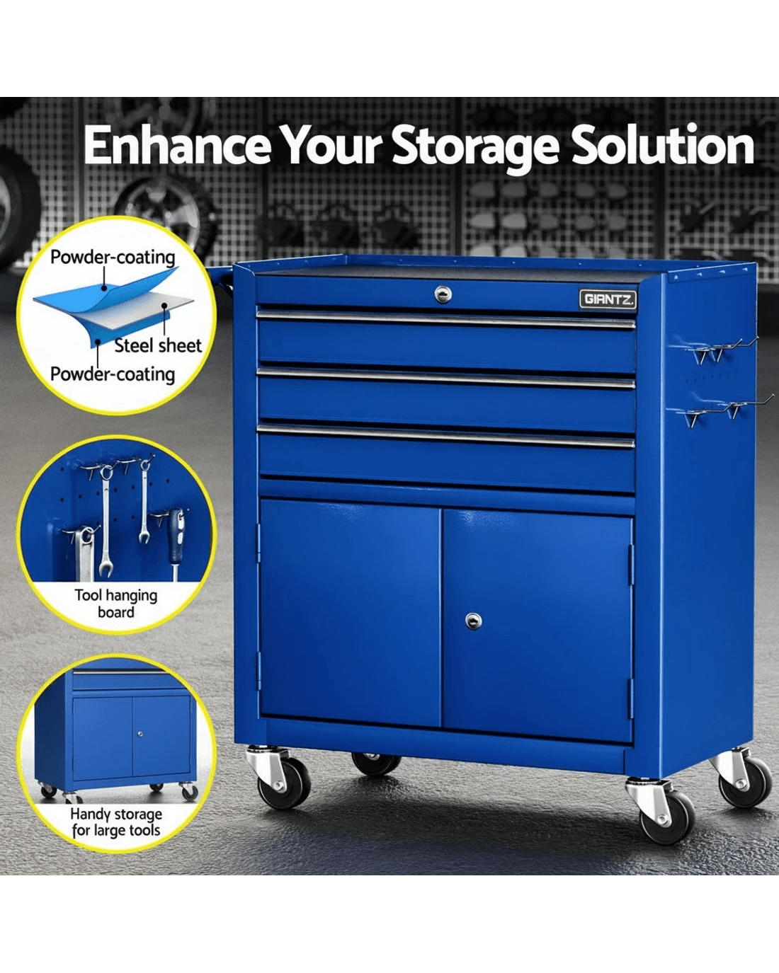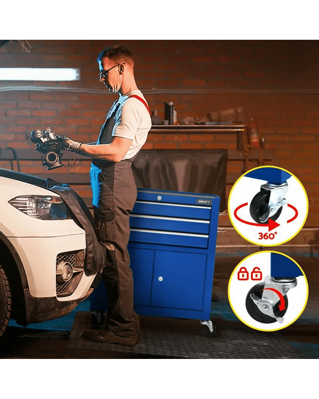 Sold by Aisle SixGiantz 3 Drawer Tool Box Cabinet Chest Toolbox Garage Storage Organiser - Blue