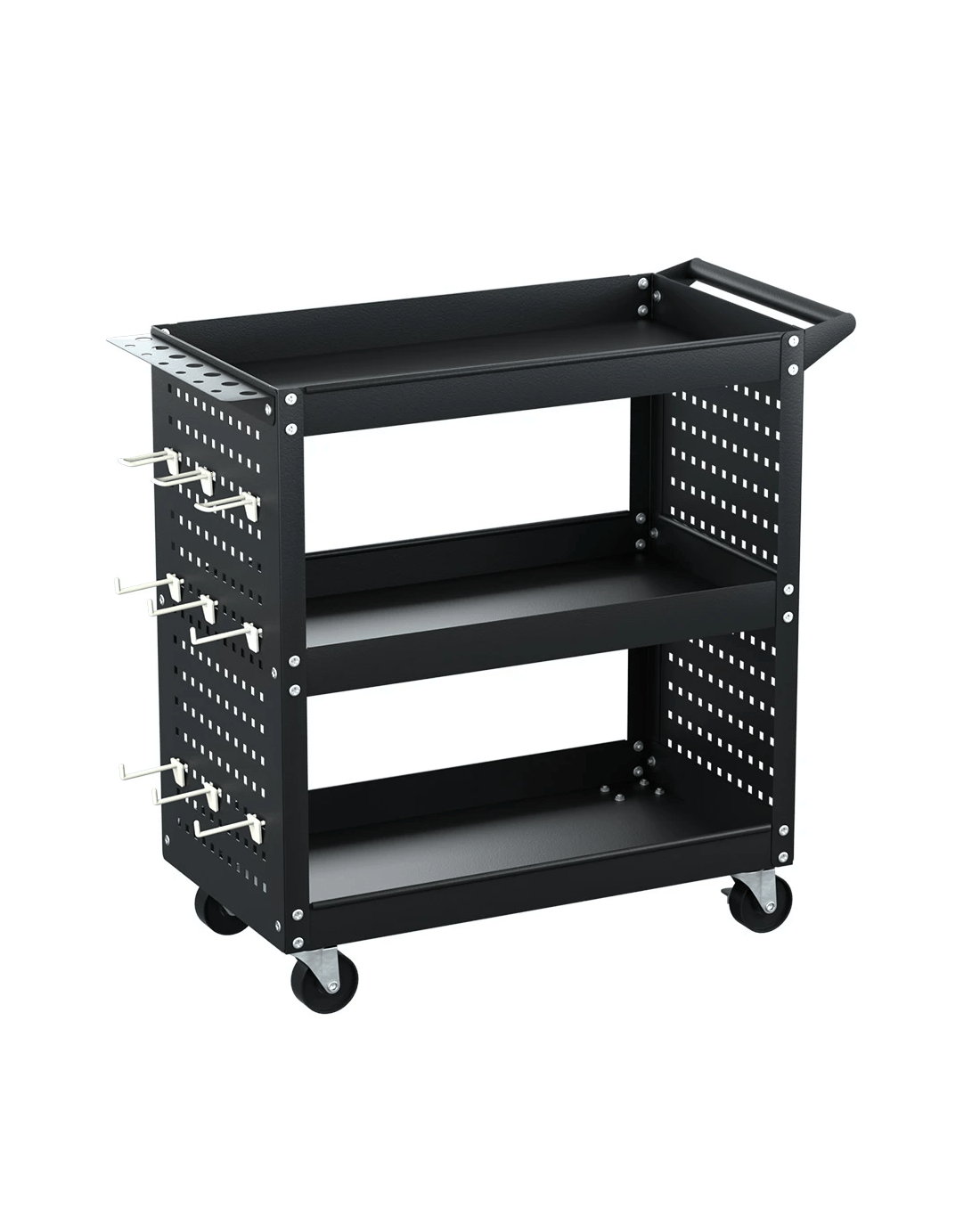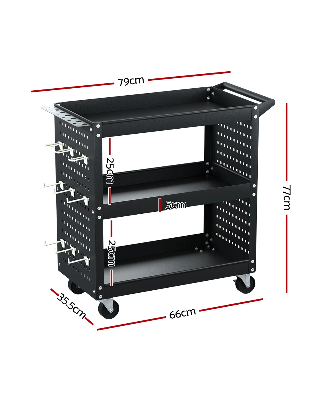 Giantz 3-Tier Tool Cart Storage Trolley Workshop Garage Pegboard Hooks - Black