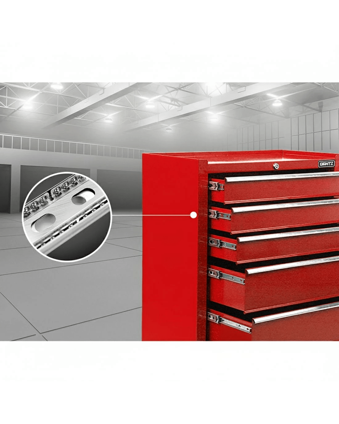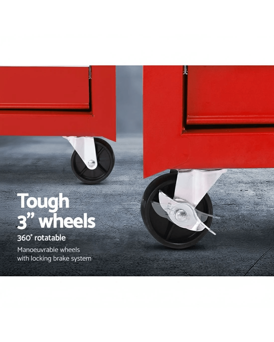 This robust, multi-drawer Gardeon Tool Trolley is an essential for any workshop. Crafted from durable steel, it features smooth ball-bearing slides for easy access and a secure lock system for safety. Its spacious design includes varying drawer sizes to accommodate tools of all shapes, complete with non-slip liners. The chest is also mounted on omni-directional castors with locakble front wheels, ensuring a smooth maneuverability and stable positioning. Sleek and functional, it's perfect for organizing and protecting your valuable tools.