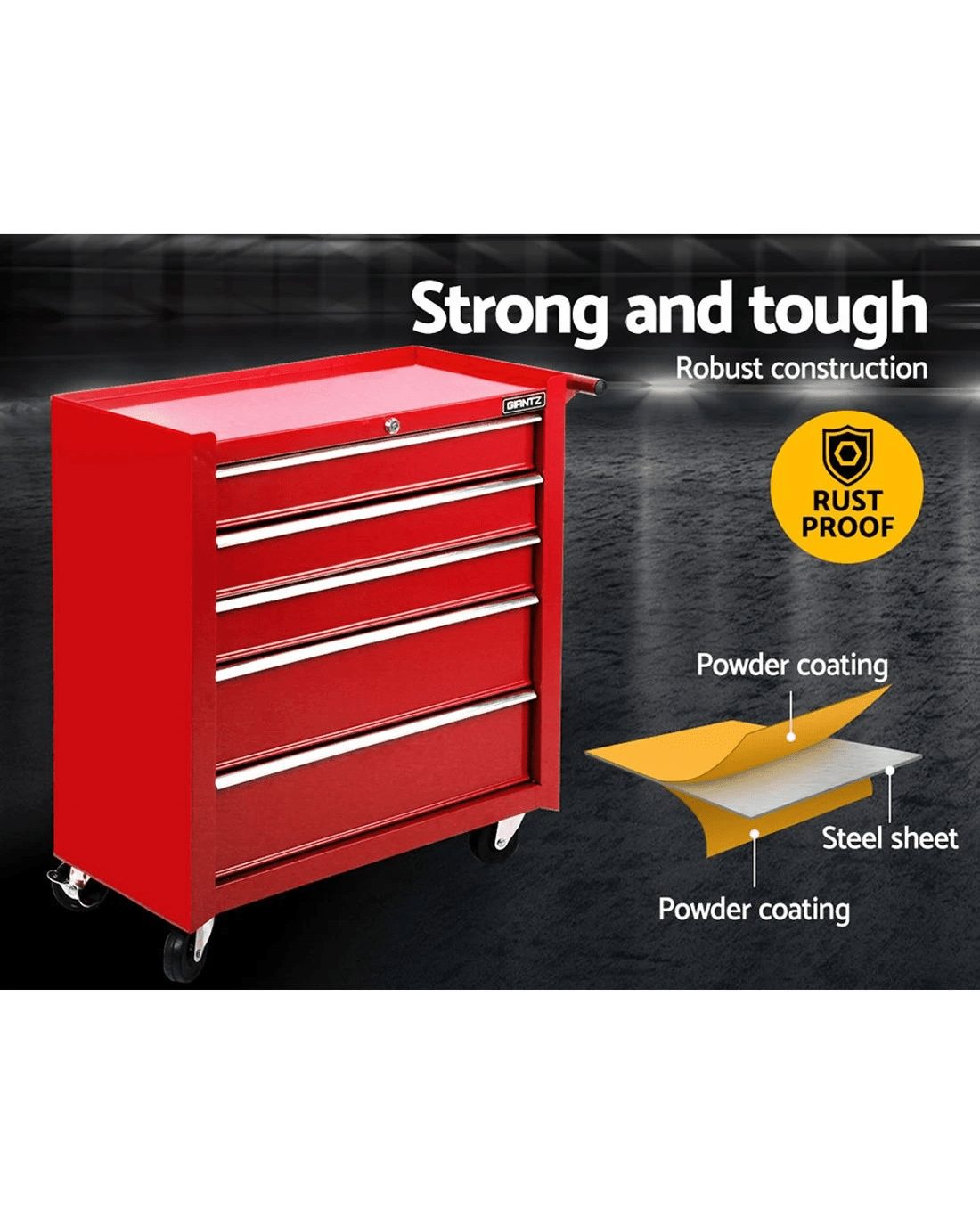 Sold by Aisle SixGiantz 5 Drawer Tool Box Cabinet Chest Trolley Box Garage Storage Toolbox Red - Red