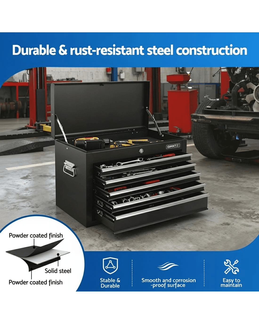 Sold by Aisle SixGIANTZ 5 Drawer Tool Chest Box Cabinet Lockable Garage Storage Organiser - Black