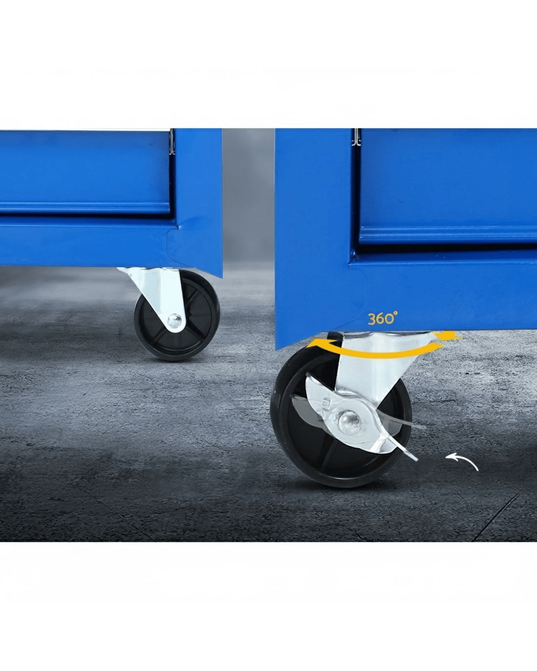 This robust, multi-drawer Gardeon Tool Trolley is an essential for any workshop. Crafted from durable steel, it features smooth ball-bearing slides for easy access and a secure lock system for safety. Its spacious design includes varying drawer sizes to accommodate tools of all shapes, complete with non-slip liners. The chest is also mounted on omni-directional castors with locakble front wheels, ensuring a smooth maneuverability and stable positioning. Sleek and functional, it's perfect for organizing and protecting your valuable tools.