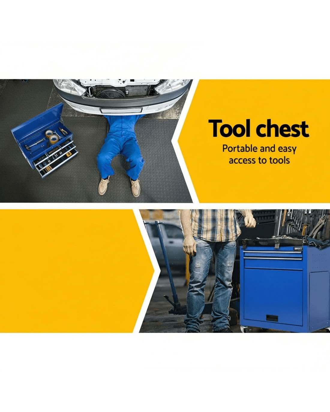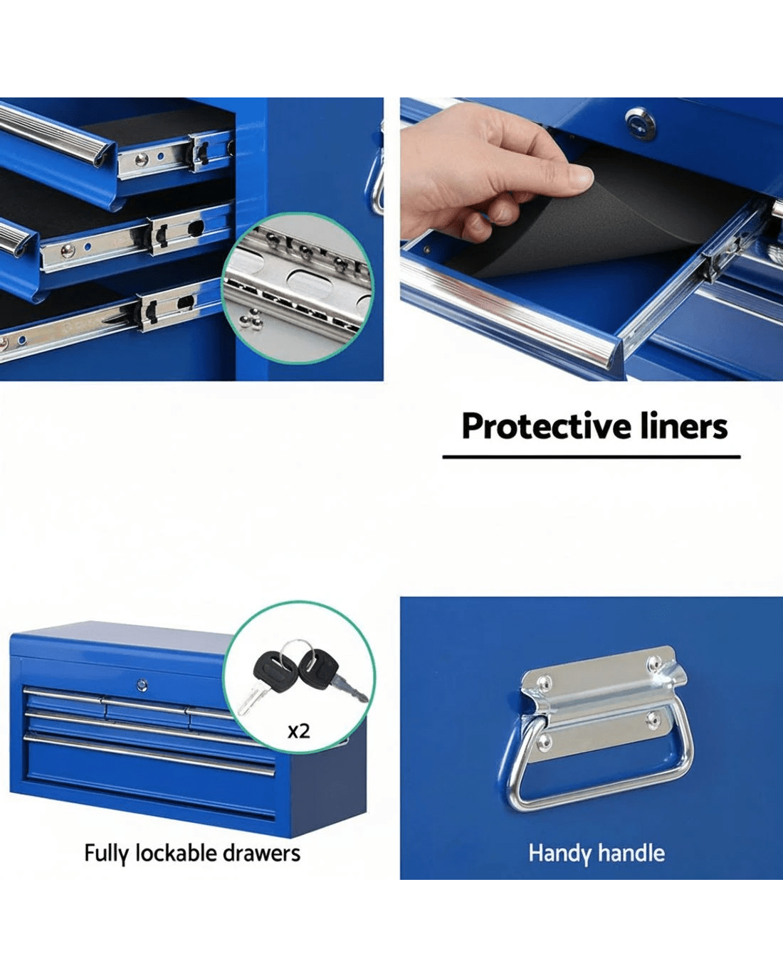 This robust, multi-drawer Gardeon Tool Trolley is an essential for any workshop. Crafted from durable steel, it features smooth ball-bearing slides for easy access and a secure lock system for safety. Its spacious design includes varying drawer sizes to accommodate tools of all shapes, complete with non-slip liners. The chest is also mounted on omni-directional castors with locakble front wheels, ensuring a smooth maneuverability and stable positioning. Sleek and functional, it's perfect for organizing and protecting your valuable tools.