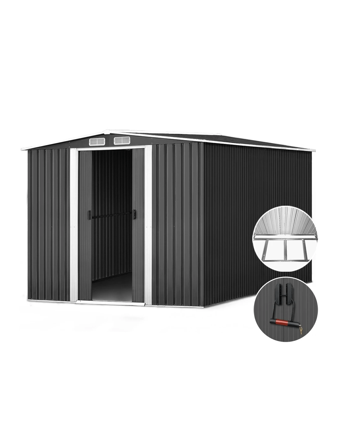 Giantz Garden Shed 2.58x3.14M w/Metal Base Sheds Outdoor Storage Workshop Shelter - Grey