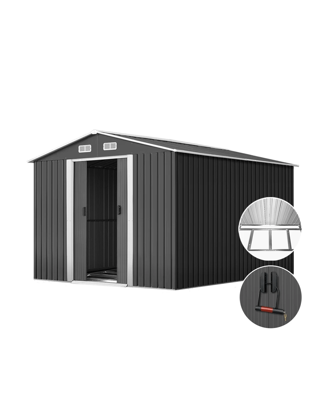 Giantz Garden Shed 2.6x3.9M w/Metal Base Sheds Outdoor Storage Workshop Tool Shelter - Grey