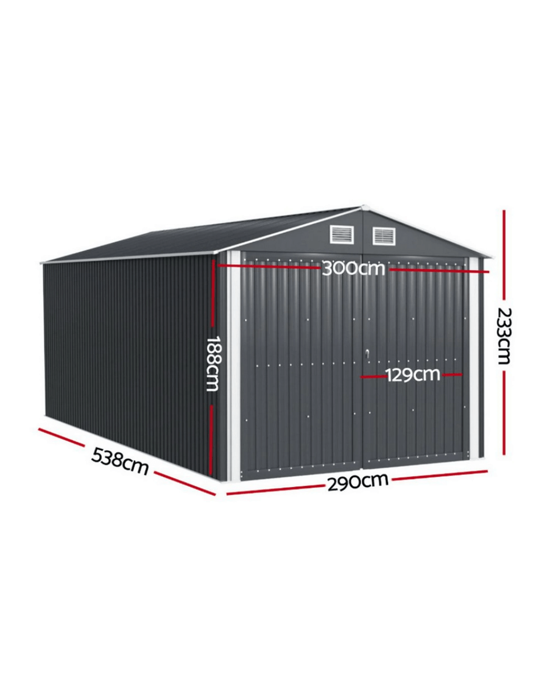 Size with roof: 300cm x 538cm x 232cm (W x D x H)