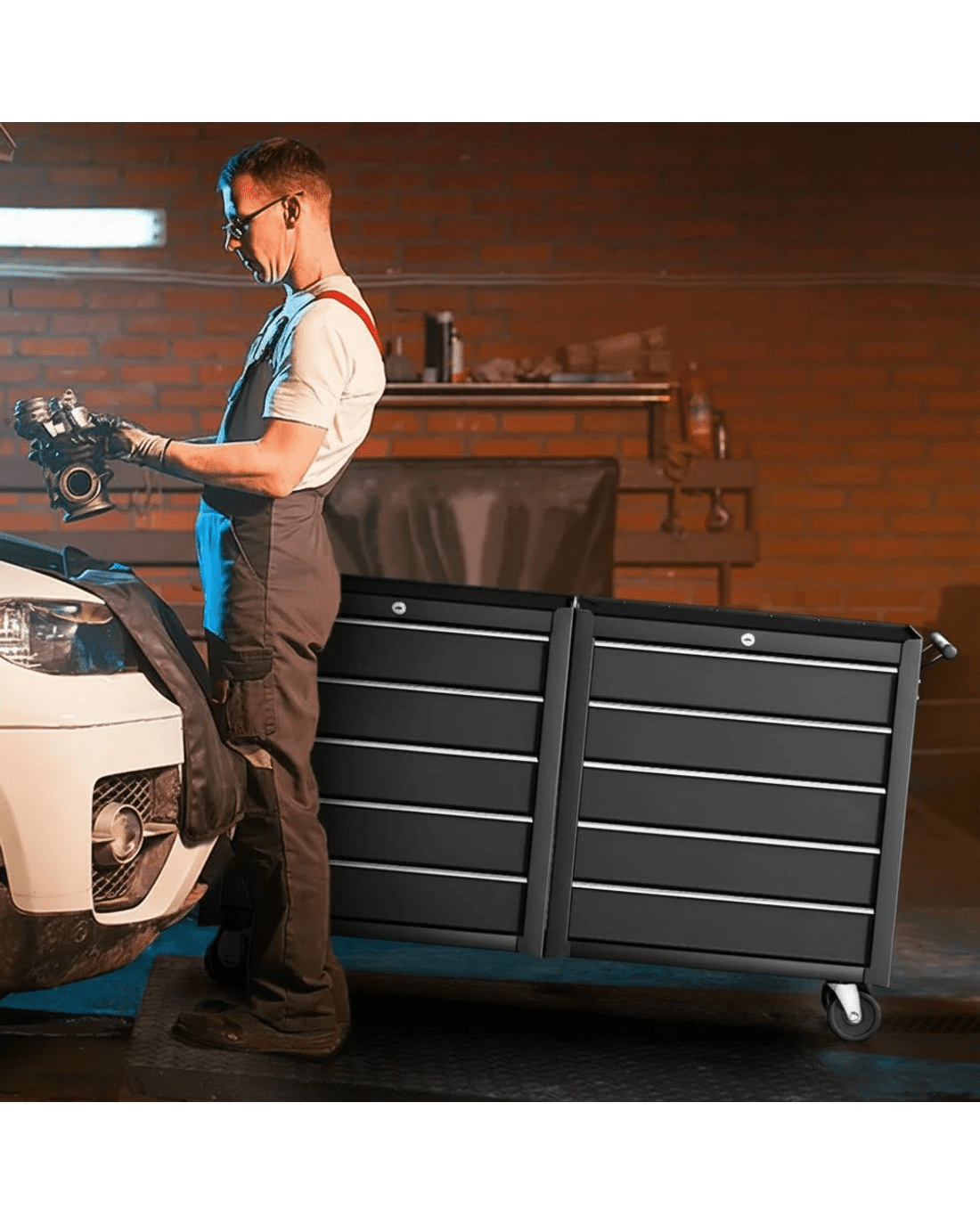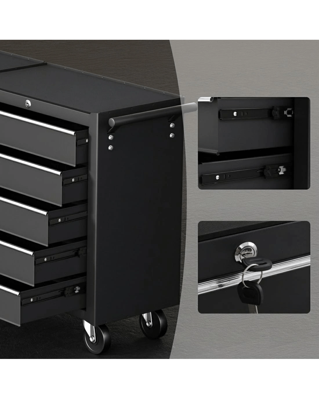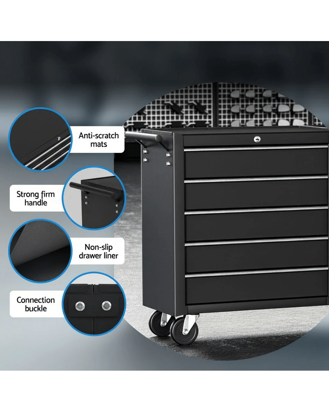 This robust, multi-drawer Gardeon Tool Trolley is an essential for any workshop. Crafted from durable steel, it features smooth ball-bearing slides for easy access and a secure lock system for safety. Its spacious design includes varying drawer sizes to accommodate tools of all shapes, complete with non-slip liners. The chest is also mounted on omni-directional castors with locakble front wheels, ensuring a smooth maneuverability and stable positioning. Sleek and functional, it's perfect for organizing and protecting your valuable tools.