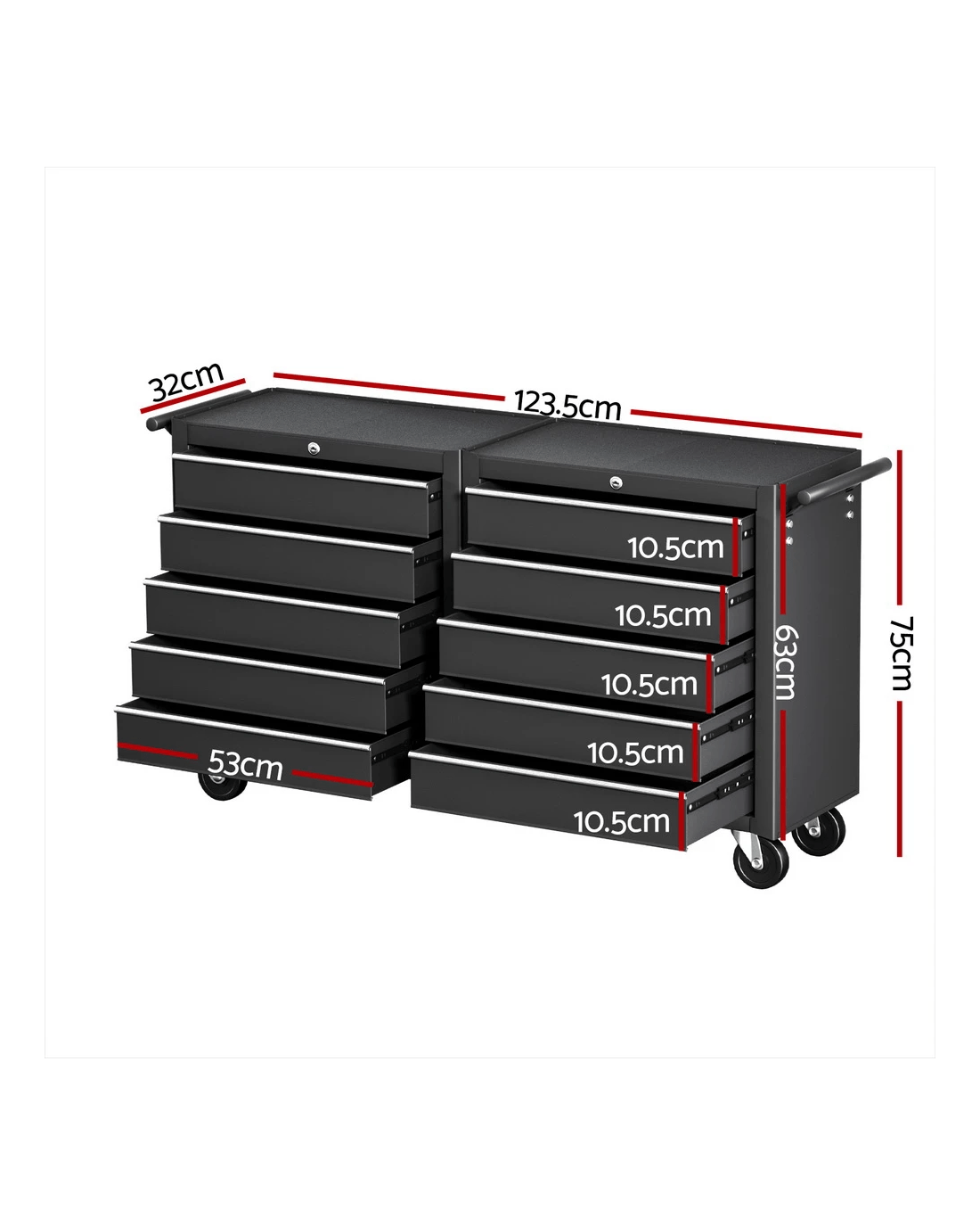 Sold by Aisle SixGiantz Tool Chest Trolley 10 Drawers Toolbox Storage - Black