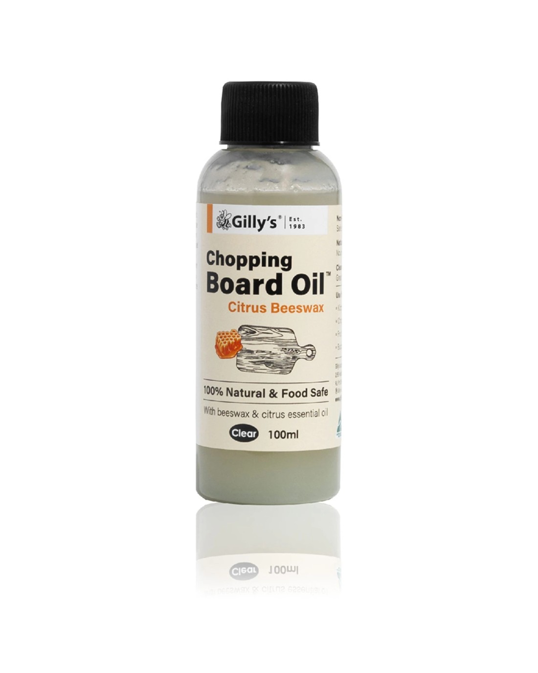 Gilly's Chopping Board Oil Natural Food Safe Beeswax Citrus 100mL - Clear