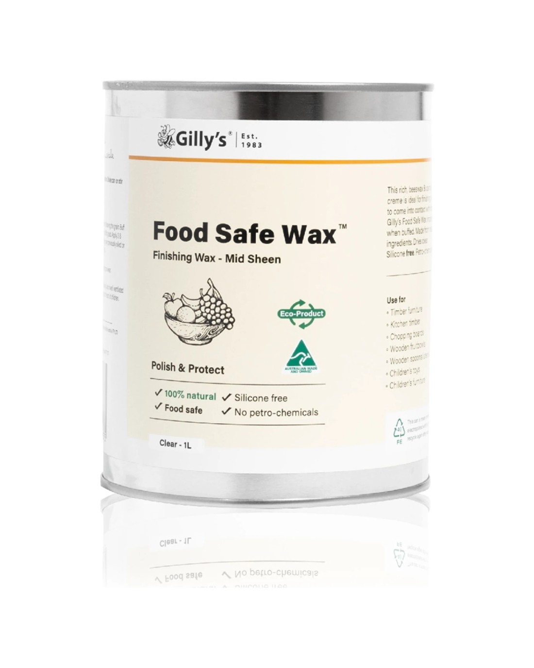The Gillys Food Safe Wax is designed for protecting and enhancing wooden surfaces used in food preparation and children's toys. This high-quality wax provides a safe, natural finish that highlights the wood's natural grain while ensuring safety for family use.