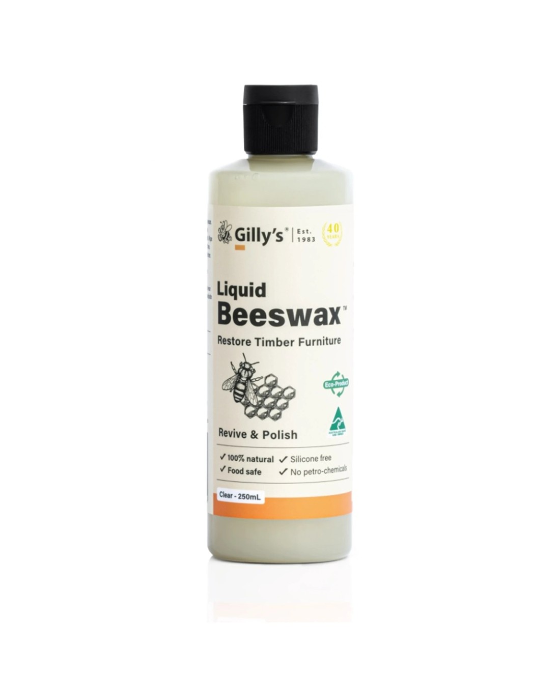 GILLYS Liquid Beeswax 250ml Food Safe Wood Finish Timber Nourisher - Clear