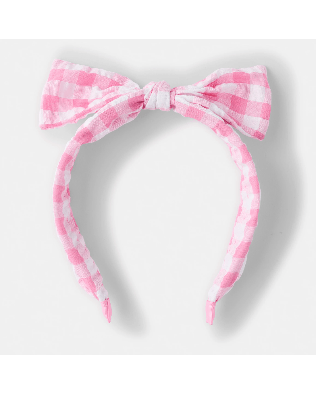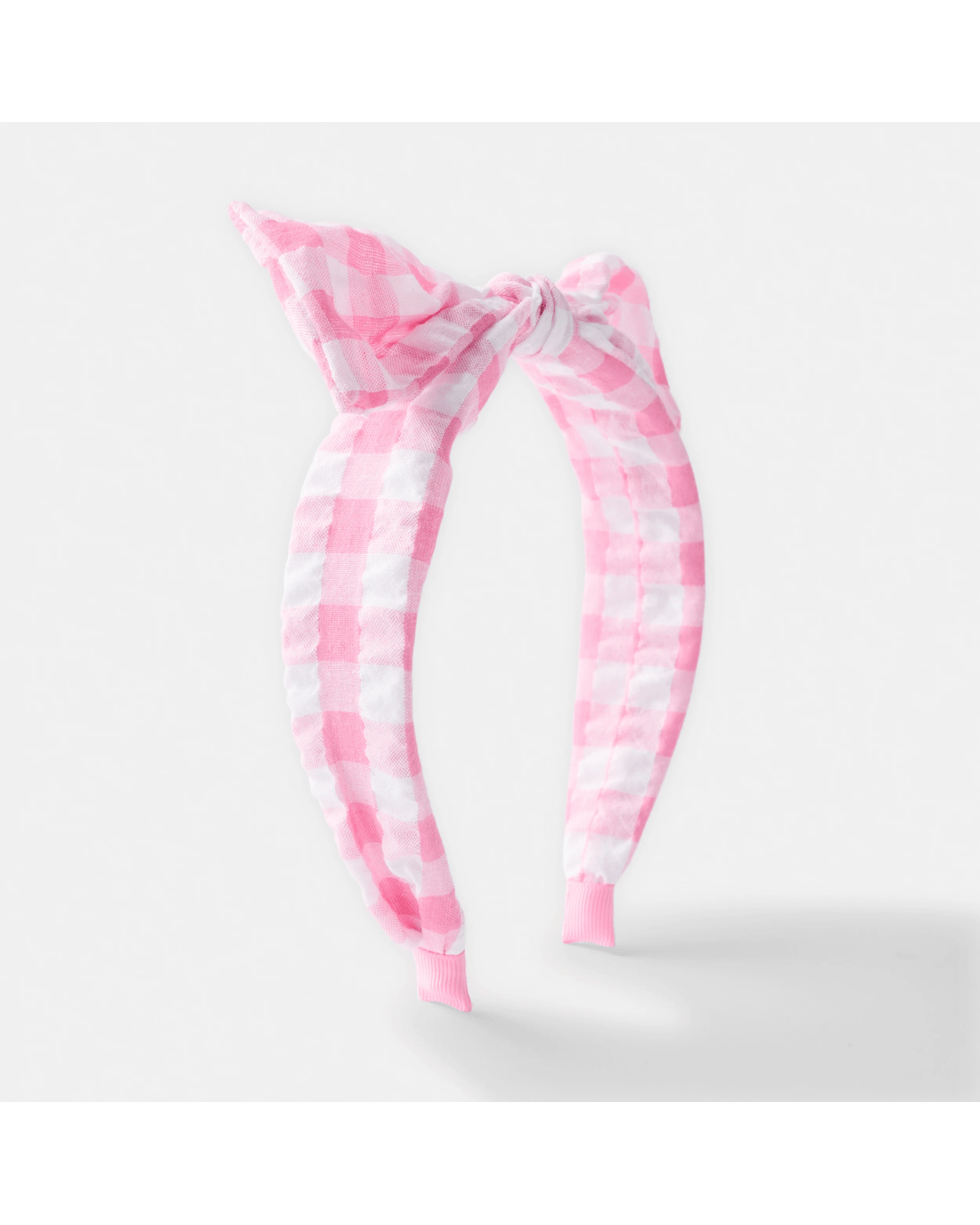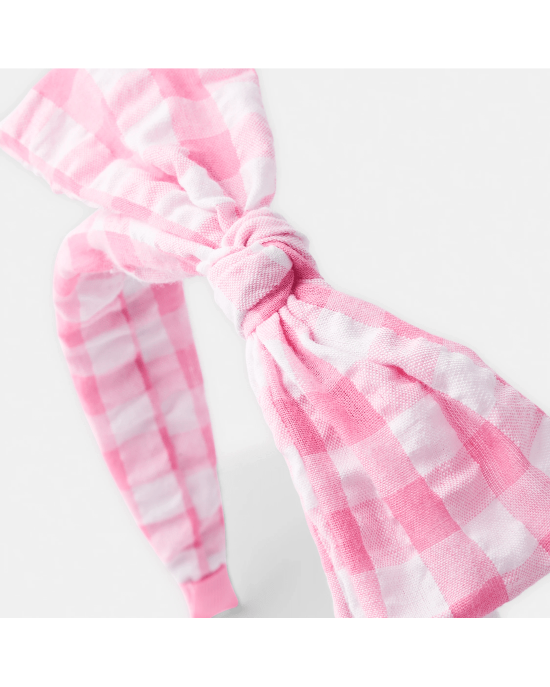 Gingham Bow Headband - Pink and White