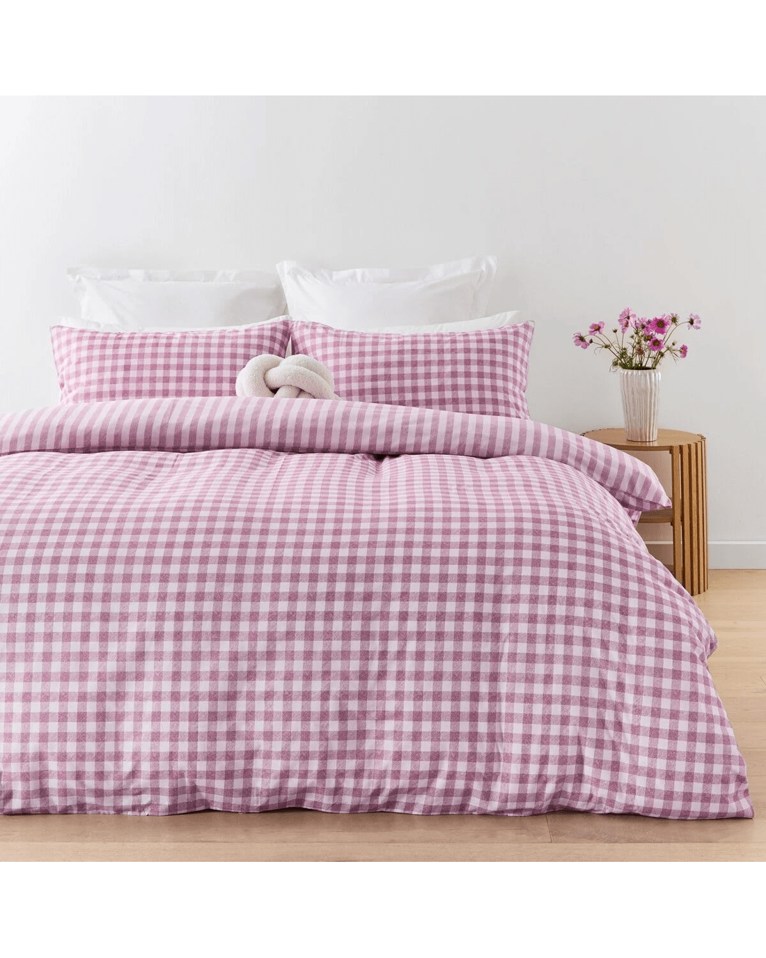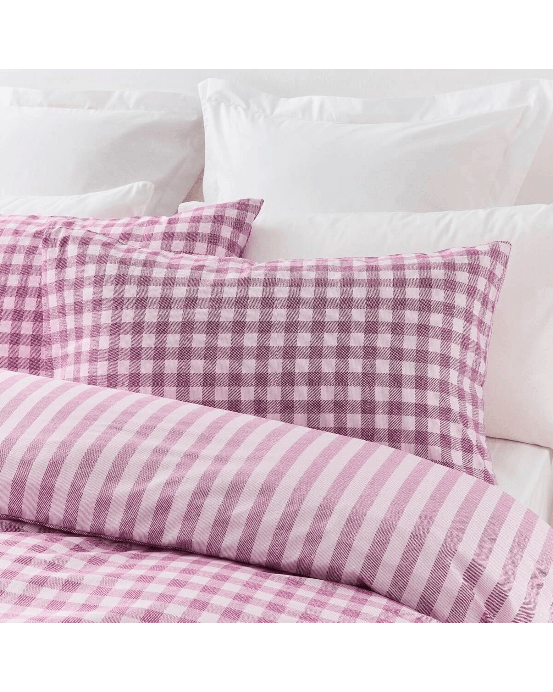 Gingham Cotton Rich Reversible Quilt Cover Set - Single Bed, Berry