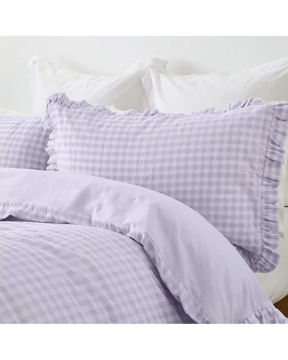 Sold by KmartGingham Ruffle Cotton Quilt Cover Set - Double Bed, Lilac