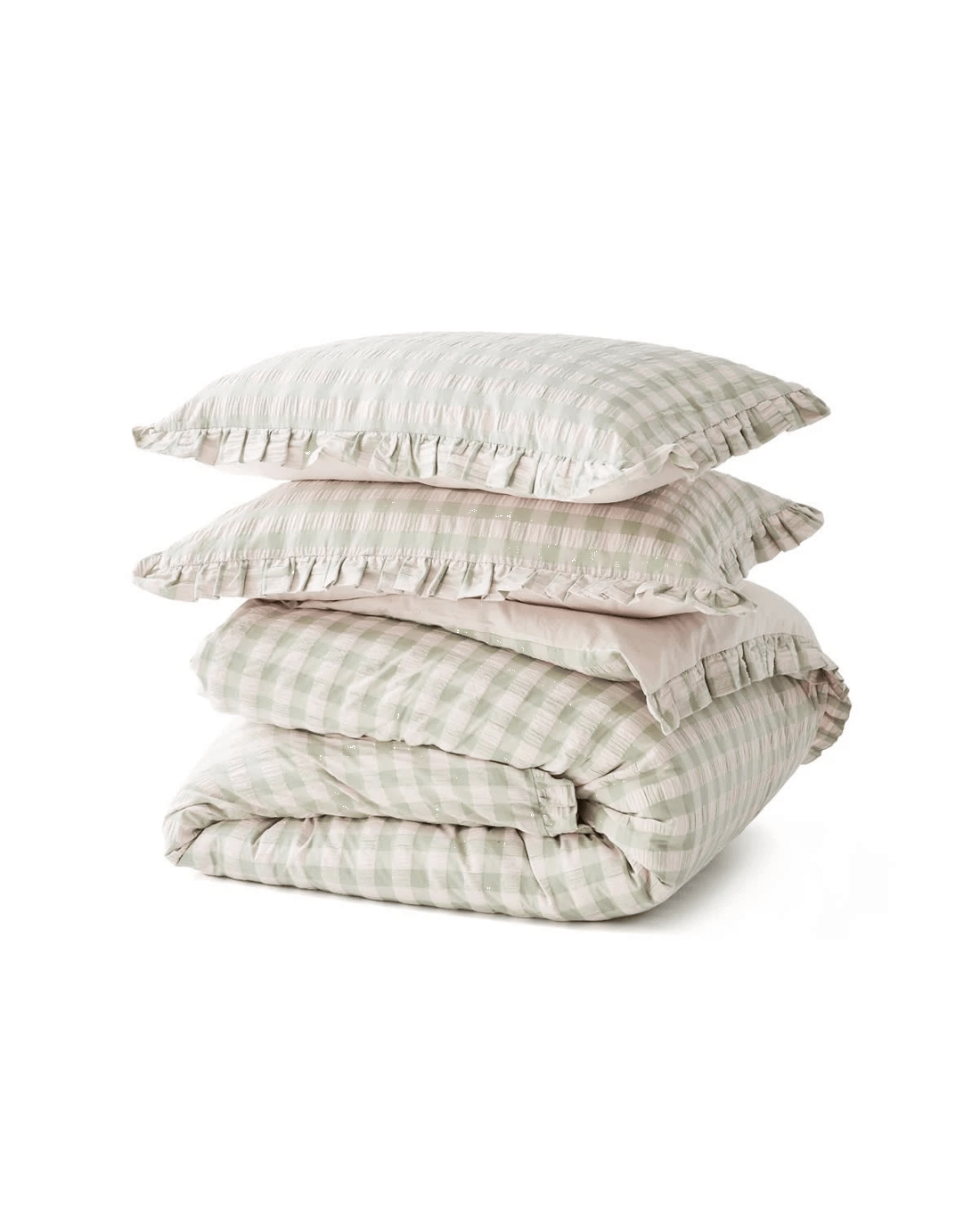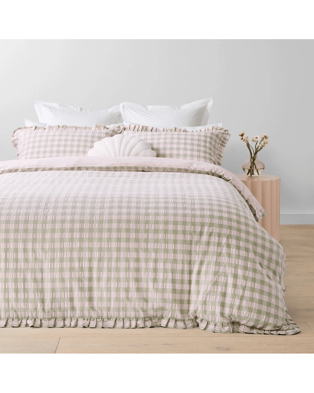 Sold by KmartGingham Ruffle Cotton Quilt Cover Set - Double Bed, Sage and Pink