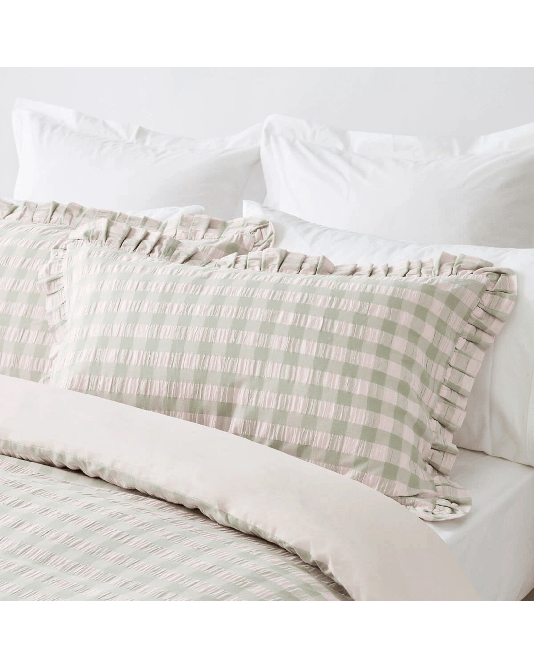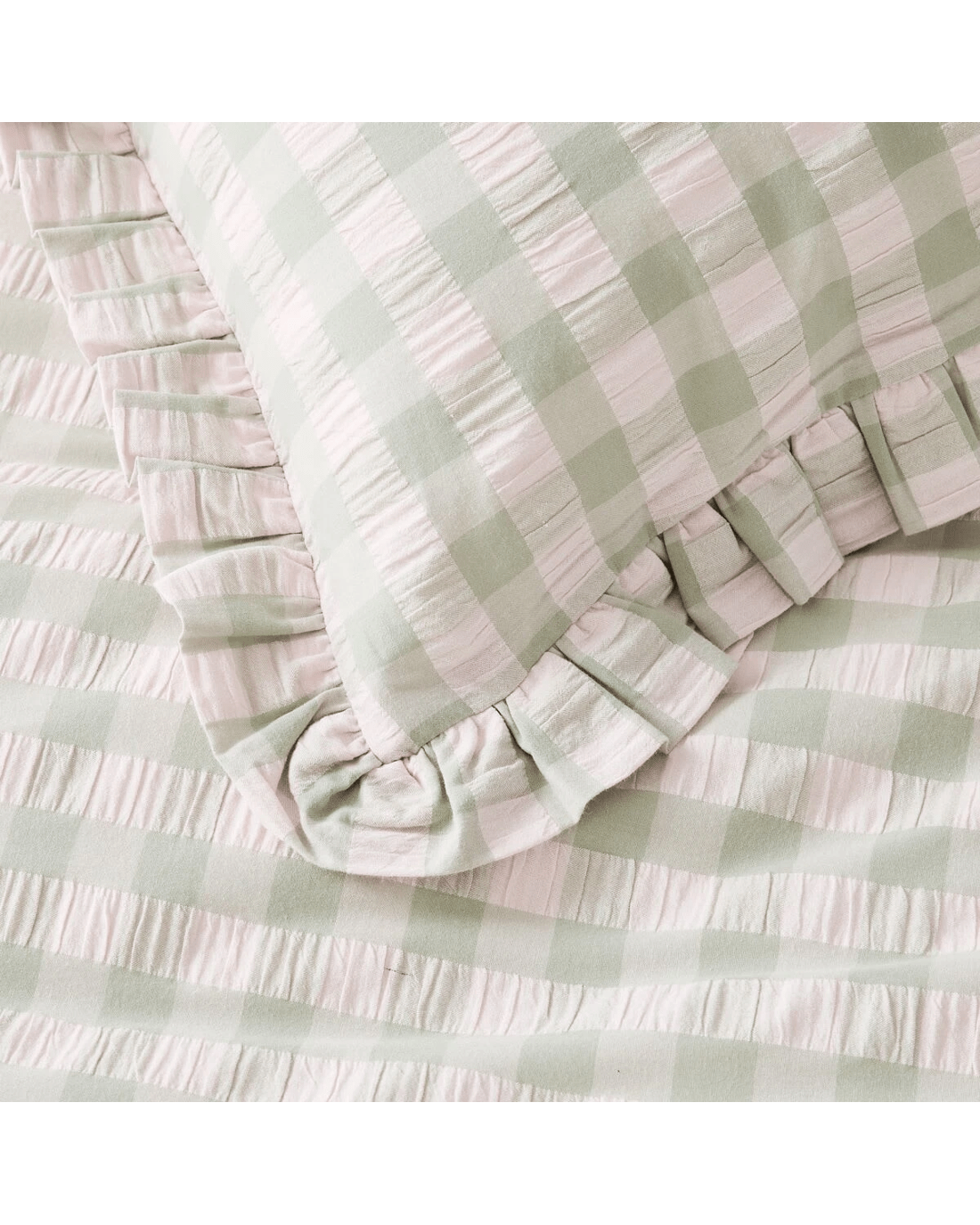 Sold by KmartGingham Ruffle Cotton Quilt Cover Set - Queen Bed, Sage and Pink