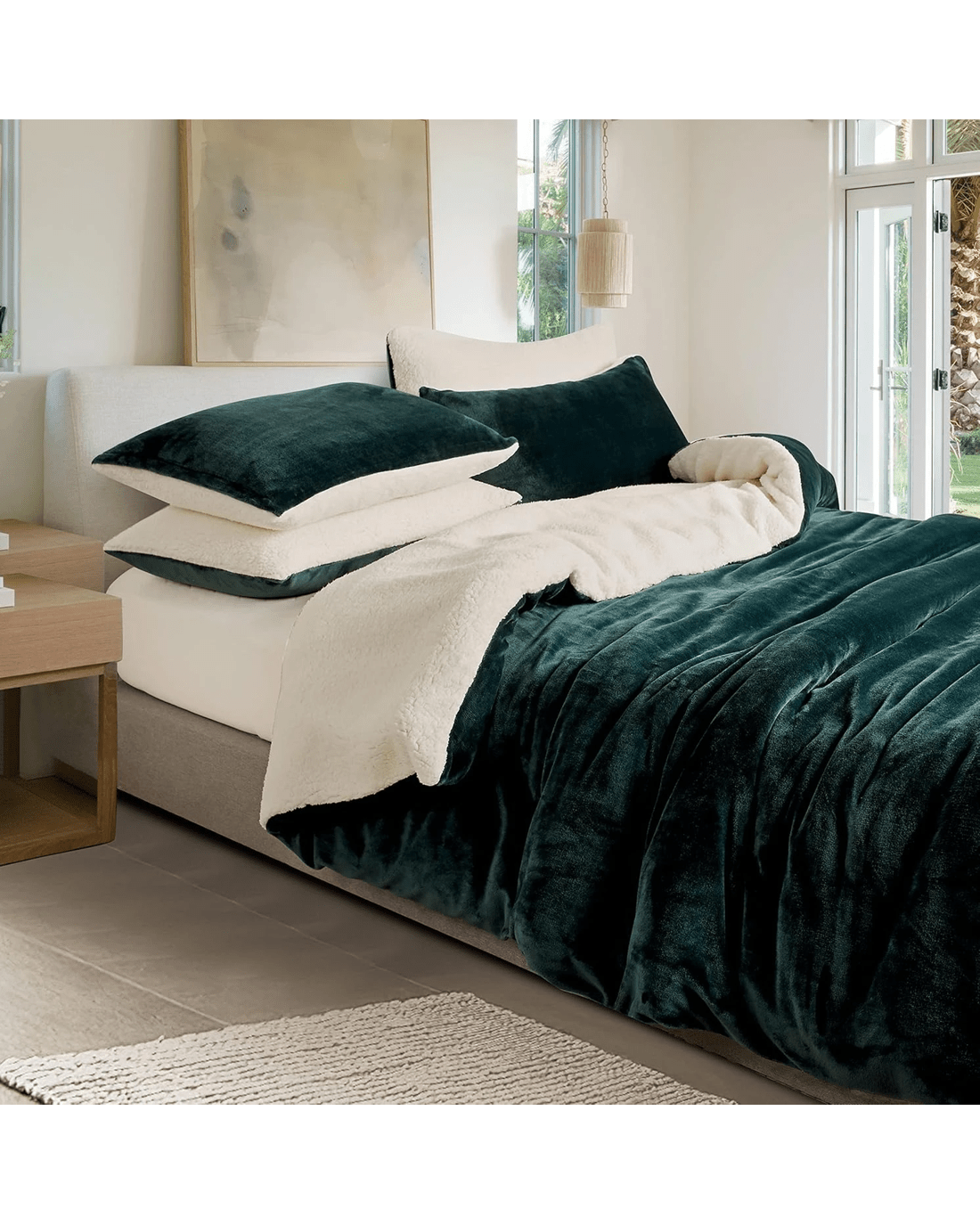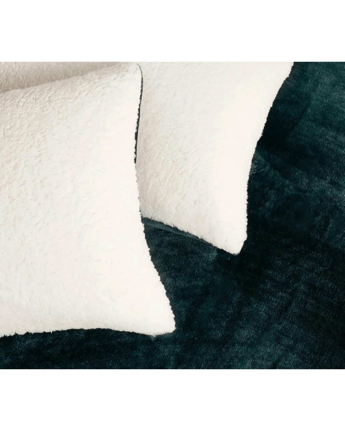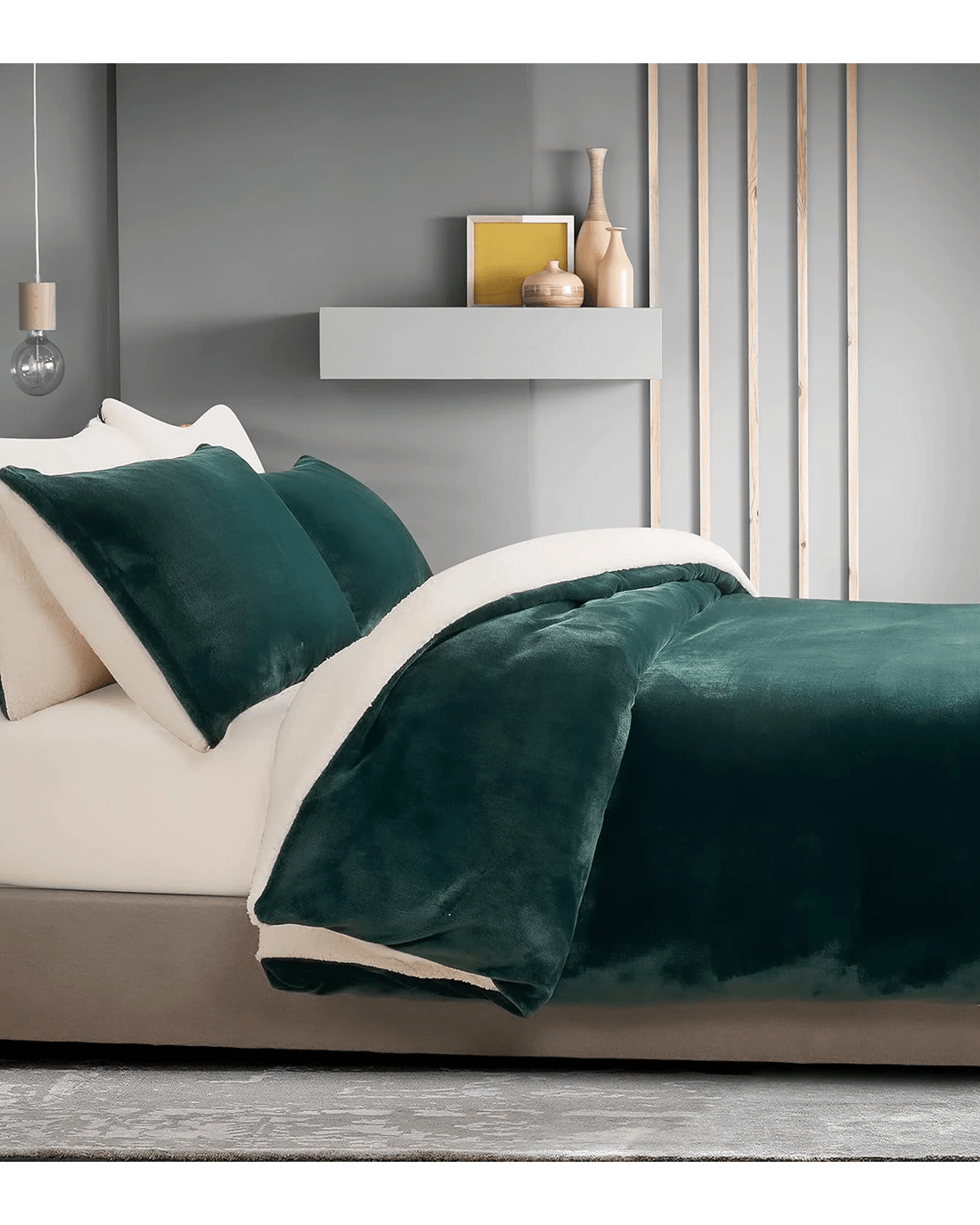 Gioia Casa 2-in-1 Teddy Sherpa Quilt Cover Set Warm Reversible - Queen Bed - Emerald Green