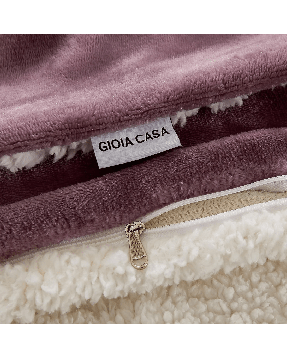 The 𝗚𝗶𝗼𝗶𝗮 𝗖𝗮𝘀𝗮 𝟮-𝗶𝗻-𝟭 𝗧𝗲𝗱𝗱𝘆 𝗦𝗵𝗲𝗿𝗽𝗮 𝗤𝘂𝗶𝗹𝘁 𝗖𝗼𝘃𝗲𝗿 𝗦𝗲𝘁 is designed for providing luxurious comfort and versatile use throughout the year. With a soft, plush blend of microplush velvet and teddy sherpa microfiber and a fully reversible design, it is ideal for anyone seeking warmth, style, and adaptability in their bedding.
