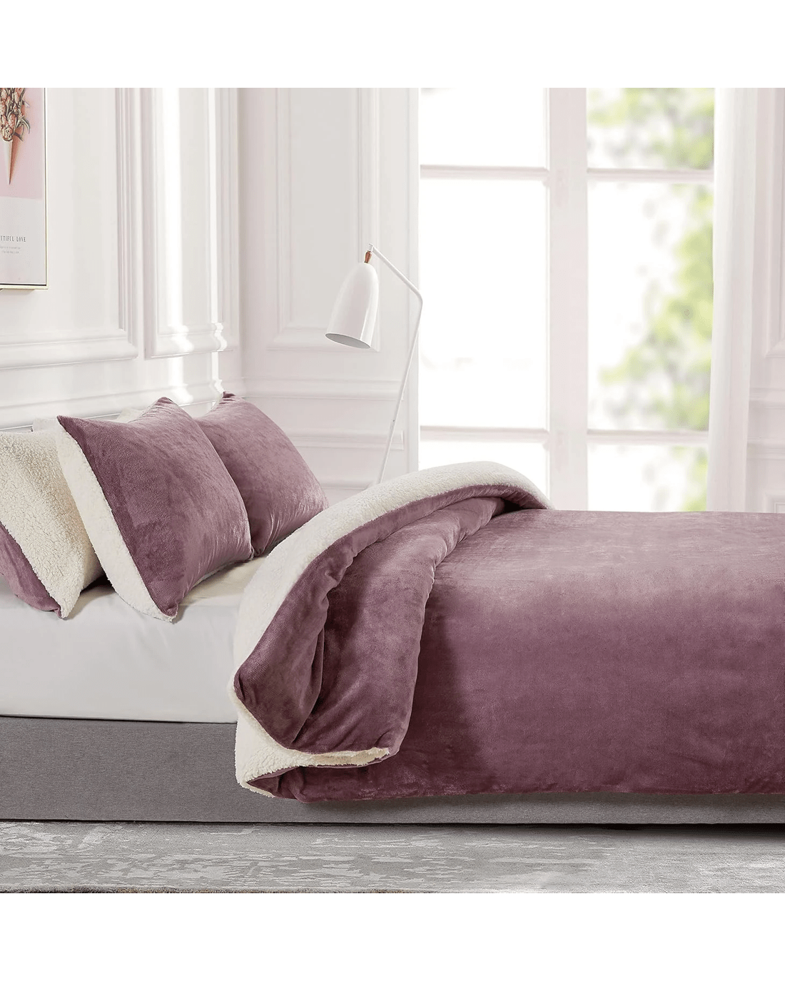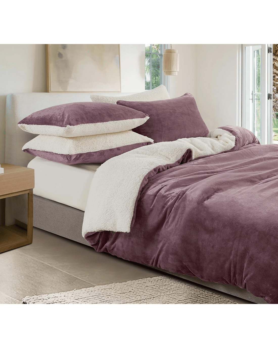 Gioia Casa 2-in-1 Teddy Sherpa Quilt Cover Set Warm Reversible - Super King Bed - Mauve