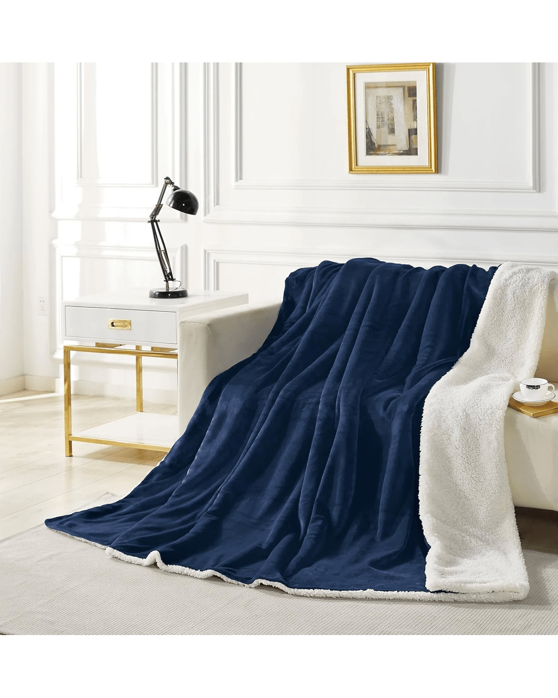 Gioia Casa 2-in-1 Teddy Sherpa Quilt Cover Set Warm Reversible - Single Bed - Navy Blue