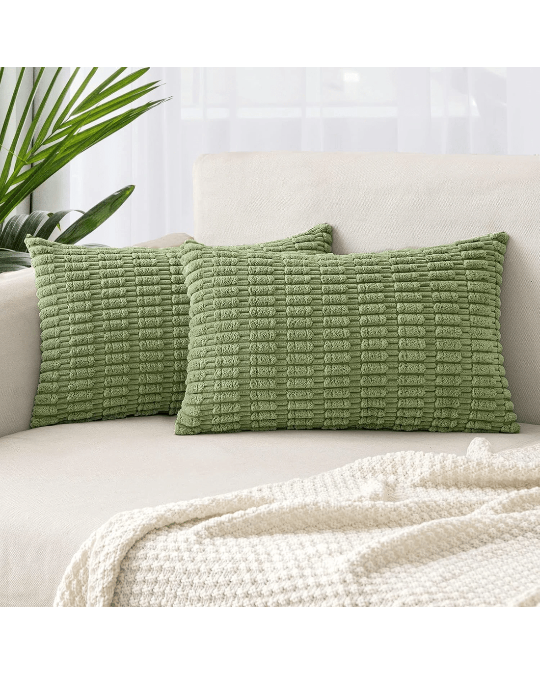 Gioia Casa 2-Pack Boho Striped Corduroy Cushion Covers 30x50cm - Sage Green