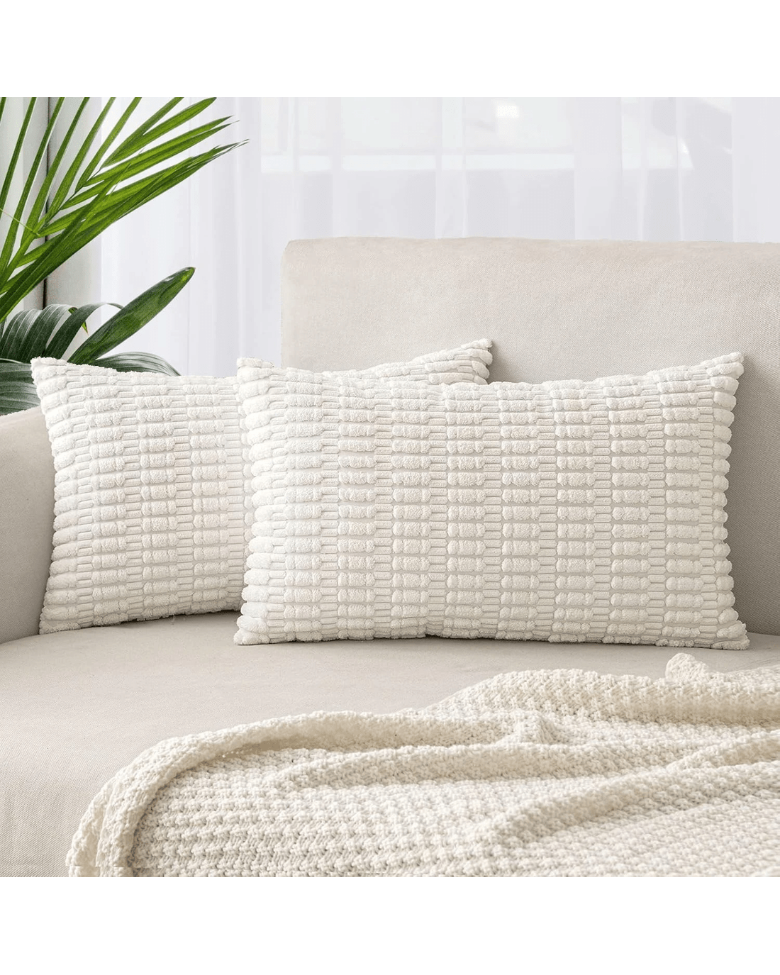 The ๐๐ถ๐ผ๐ถ๐ฎ ๐๐ฎ๐๐ฎ ๐ฎ-๐ฃ๐ฎ๐ฐ๐ธ ๐๐ผ๐ต๐ผ ๐๐ผ๐ฟ๐ฑ๐๐ฟ๐ผ๐ ๐๐๐๐ต๐ถ๐ผ๐ป ๐๐ผ๐๐ฒ๐ฟ๐ feature a striped corduroy texture that brings a relaxed, decorative touch to your space. Made from soft and durable polyester corduroy, they offer a comfortable feel and lasting use. Each cover includes a hidden zipper for a neat finish and easy cushion insertion, making them suitable for sofas, beds, or lounge areas.