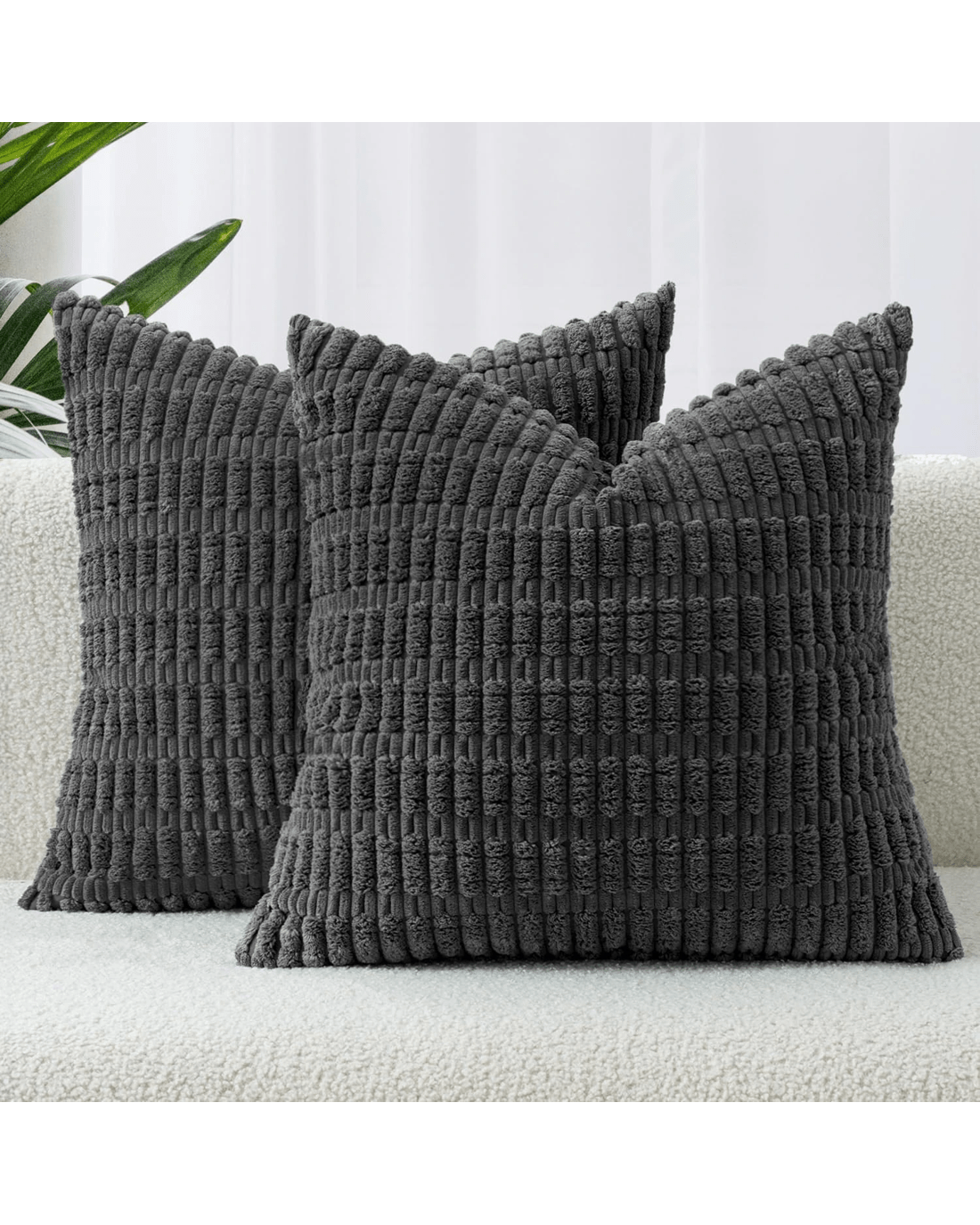 Sold by Gioia CasaGioia Casa 2-Pack Boho Striped Corduroy Cushion Covers 45x45cm - Dark Grey