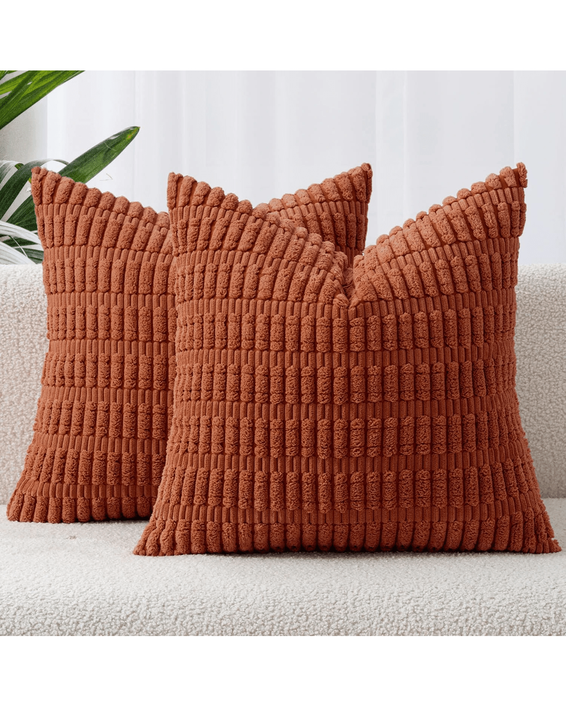Gioia Casa 2-Pack Boho Striped Corduroy Cushion Covers 45x45cm - Rust