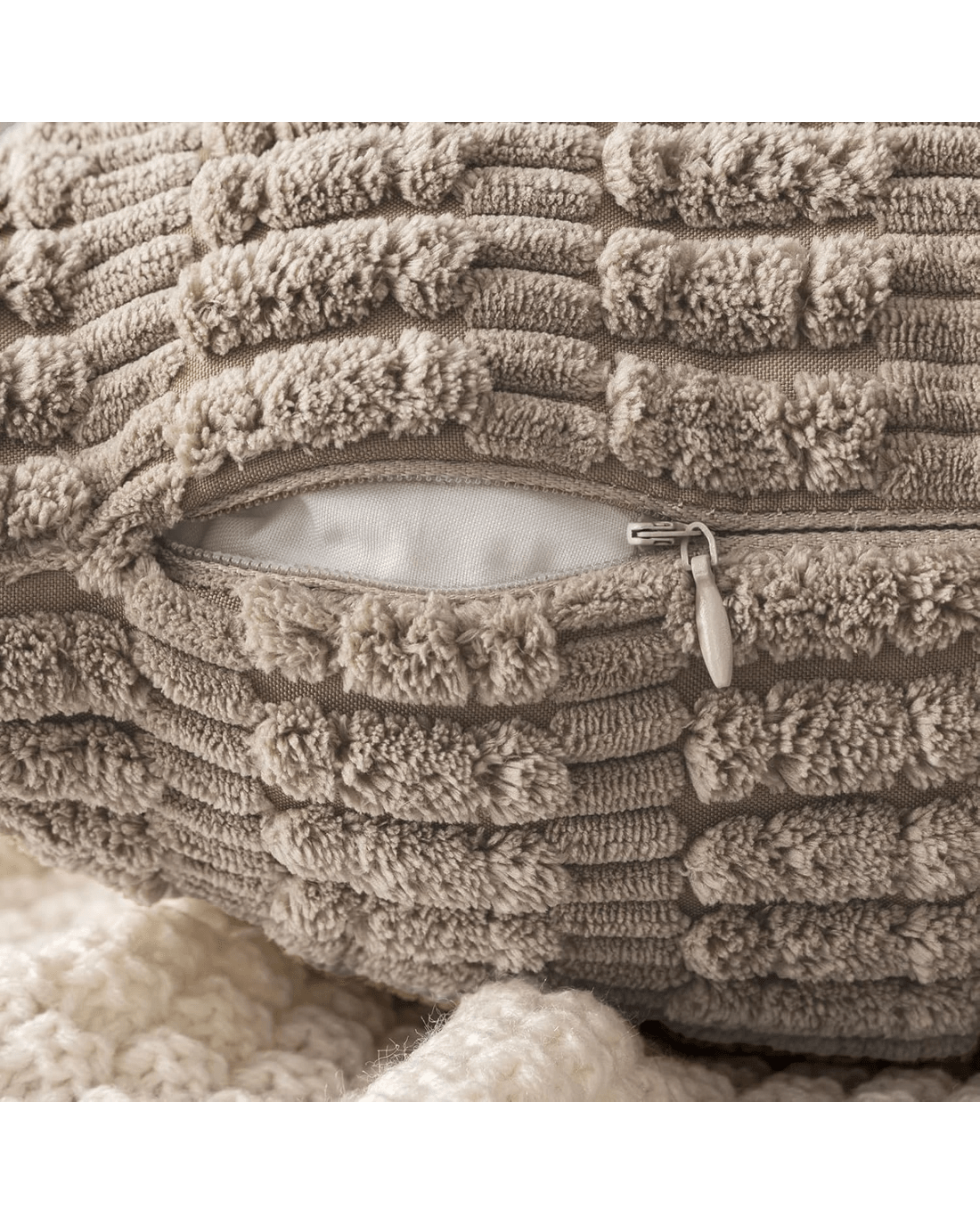 โข ๐๐ถ๐ฑ๐ฑ๐ฒ๐ป ๐ญ๐ถ๐ฝ๐ฝ๐ฒ๐ฟ ๐๐น๐ผ๐๐๐ฟ๐ฒ: Concealed zipper provides a clean, polished look while allowing easy cushion insertion and removal.