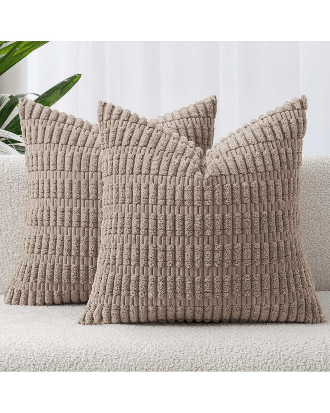 The ๐๐ถ๐ผ๐ถ๐ฎ ๐๐ฎ๐๐ฎ ๐ฎ-๐ฃ๐ฎ๐ฐ๐ธ ๐๐ผ๐ต๐ผ ๐๐ผ๐ฟ๐ฑ๐๐ฟ๐ผ๐ ๐๐๐๐ต๐ถ๐ผ๐ป ๐๐ผ๐๐ฒ๐ฟ๐ feature a striped corduroy texture that brings a relaxed, decorative touch to your space. Made from soft and durable polyester corduroy, they offer a comfortable feel and lasting use. Each cover includes a hidden zipper for a neat finish and easy cushion insertion, making them suitable for sofas, beds, or lounge areas.