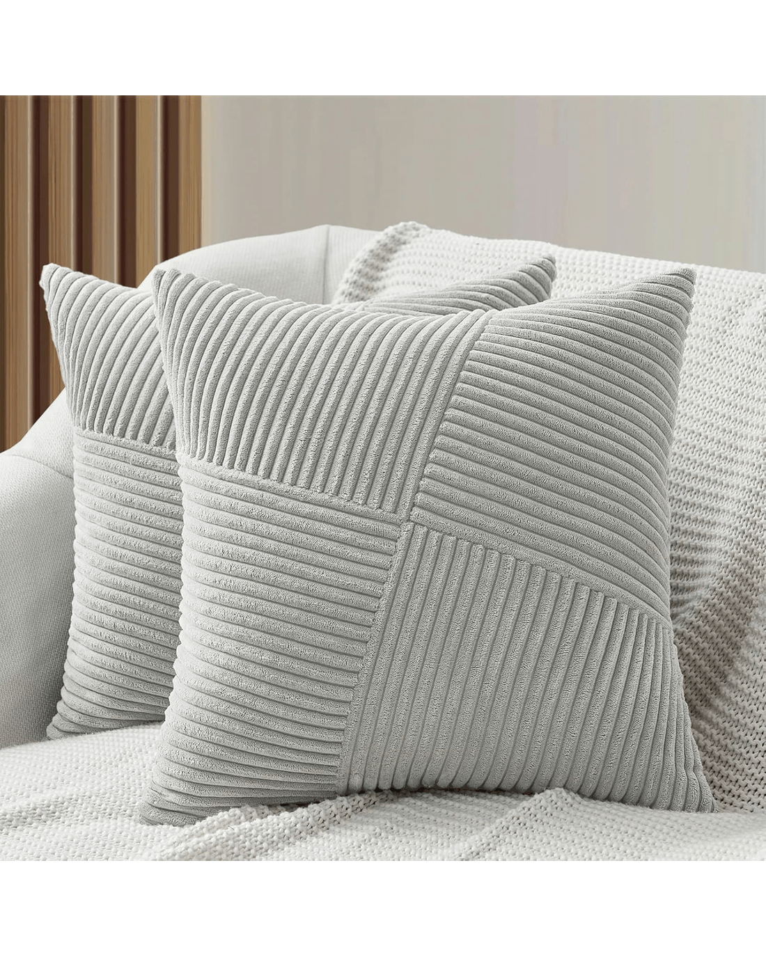 Gioia Casa 2-Pack Corduroy Cushion Covers Windmill Pattern 45x45cm - Light Grey
