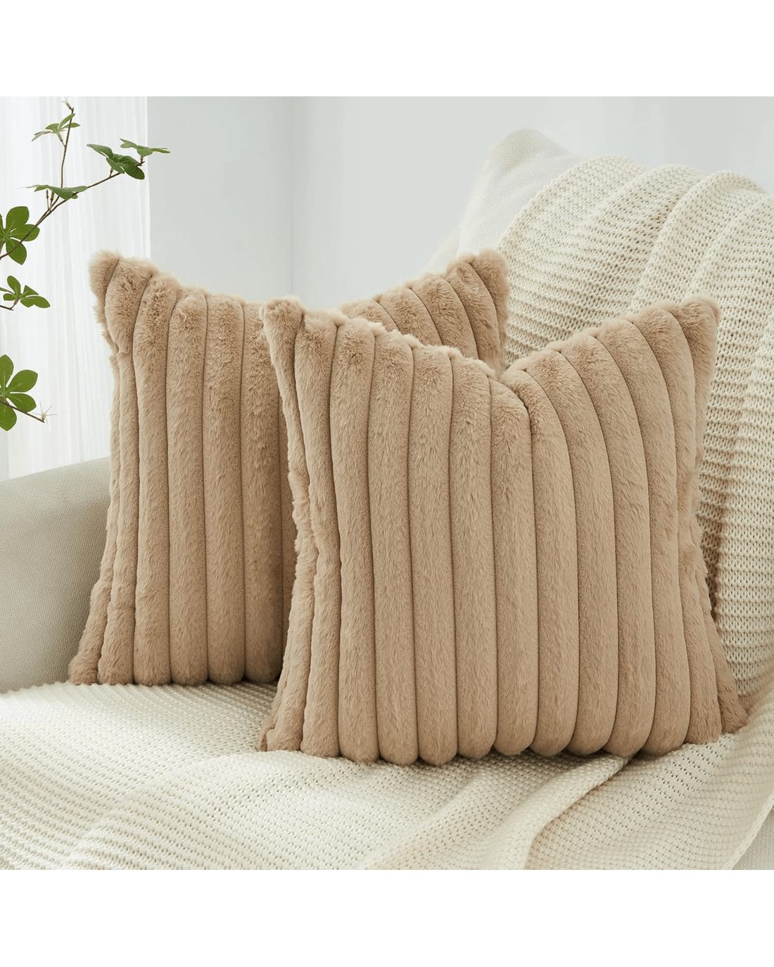 Sold by Gioia CasaGioia Casa 2-Pack Faux Fur Cushion Covers Soft 45x45cm - Natural