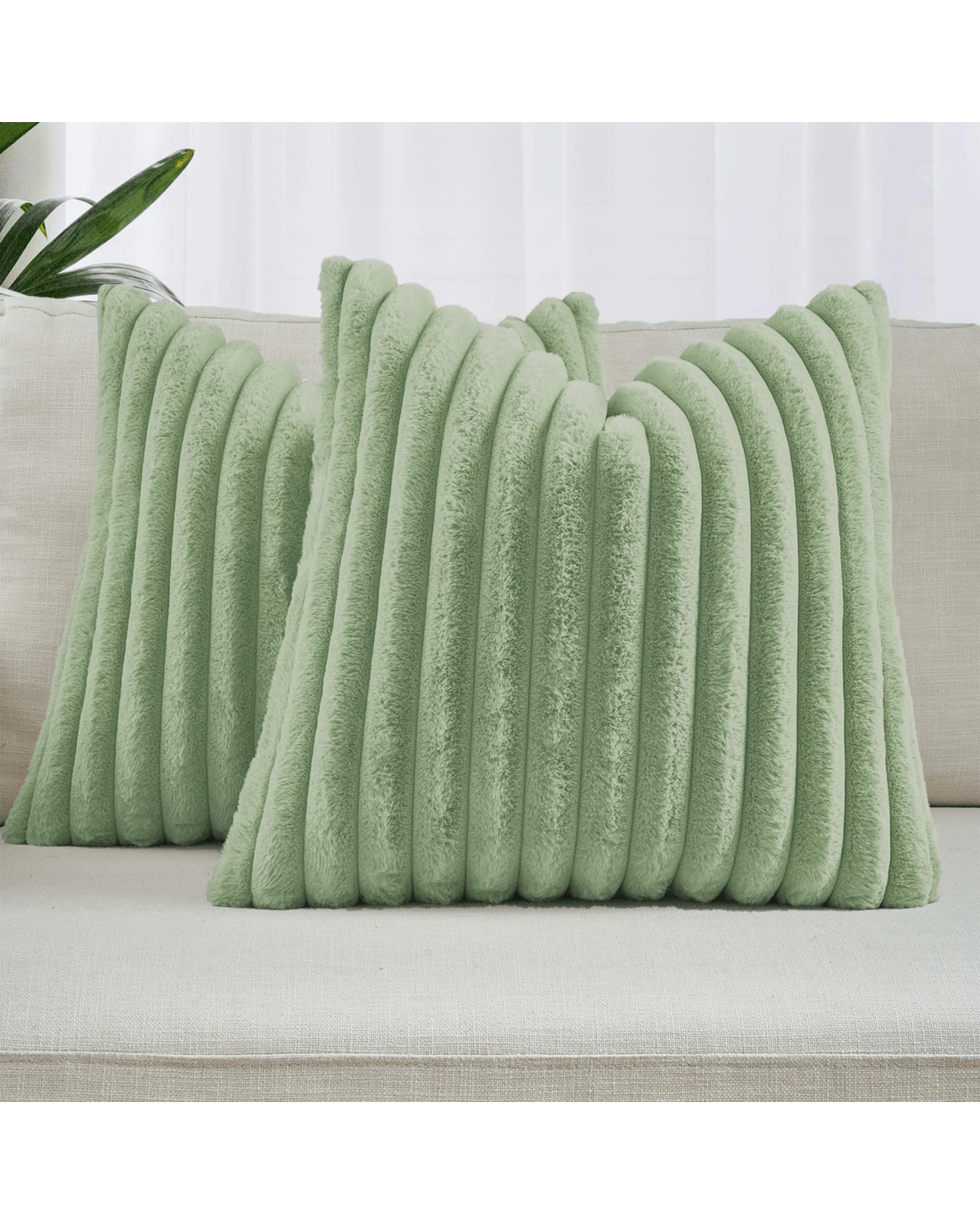 Gioia Casa 2-Pack Faux Fur Cushion Covers Soft 45x45cm - Sage