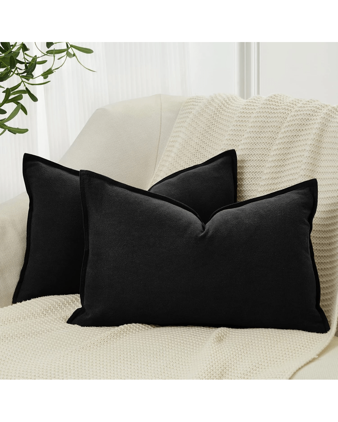 Gioia Casa 2-Pack Linen-Cotton Blend Cushion Covers 30x50cm - Black