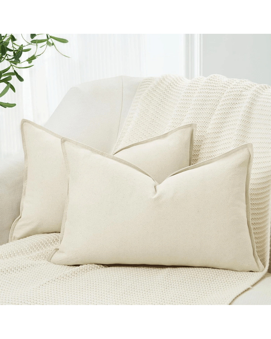 The ๐๐ถ๐ผ๐ถ๐ฎ ๐๐ฎ๐๐ฎ ๐ฎ-๐ฃ๐ฎ๐ฐ๐ธ ๐๐ถ๐ป๐ฒ๐ป-๐๐ผ๐๐๐ผ๐ป ๐๐น๐ฒ๐ป๐ฑ ๐๐๐๐ต๐ถ๐ผ๐ป ๐๐ผ๐๐ฒ๐ฟ๐ are made from a soft, breathable blend of 30% linen and 70% cotton. Their simple, versatile design complements a range of home dรฉcor styles, from modern to rustic or minimalist interiors.