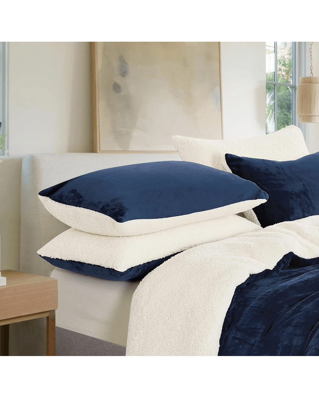The 𝗚𝗶𝗼𝗶𝗮 𝗖𝗮𝘀𝗮 𝟮-𝗣𝗮𝗰𝗸 𝗧𝗲𝗱𝗱𝘆 𝗦𝗵𝗲𝗿𝗽𝗮 𝗦𝘁𝗮𝗻𝗱𝗮𝗿𝗱 𝗣𝗶𝗹𝗹𝗼𝘄𝗰𝗮𝘀𝗲𝘀 offer soft and comfortable bedding for everyday use. With a fully reversible design featuring microplush velvet on one side and teddy sherpa on the other, they provide practical comfort for different seasons.