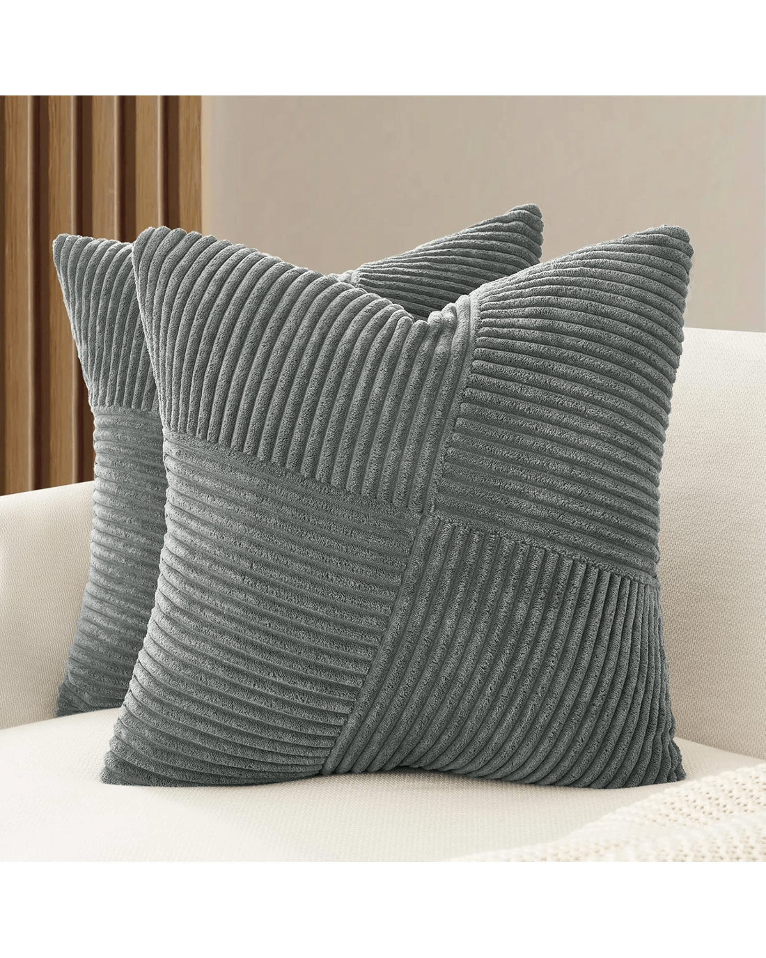 The Gioia Casa 2-Pack Corduroy Cushion Covers add subtle texture and comfort to your living space. Made from soft corduroy-style velvet, they feature a windmill-inspired pattern and a hidden zipper for a neat finish. Suitable for sofas, beds, or lounge chairs, these covers are durable and easy to care for, making them a practical addition to any room.