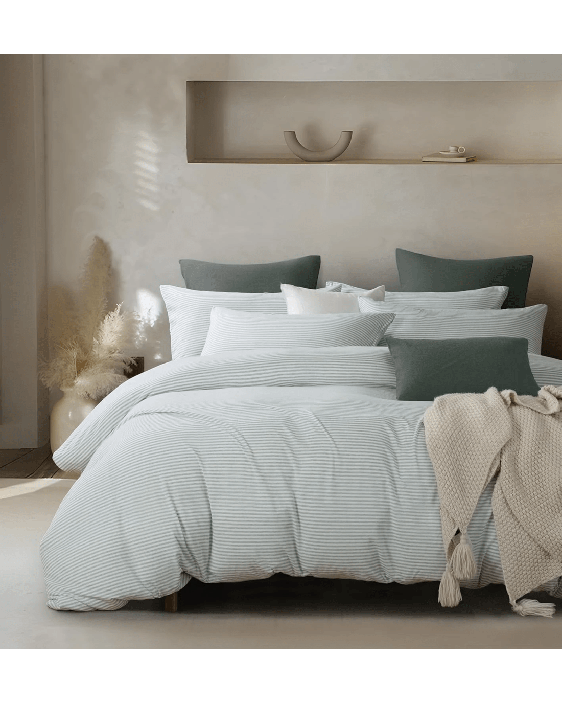 Sold by Gioia CasaGioia Casa Jersey Cotton Quilt Cover Set Soft Breathable Stretchy - Single Bed - Sage Stripe