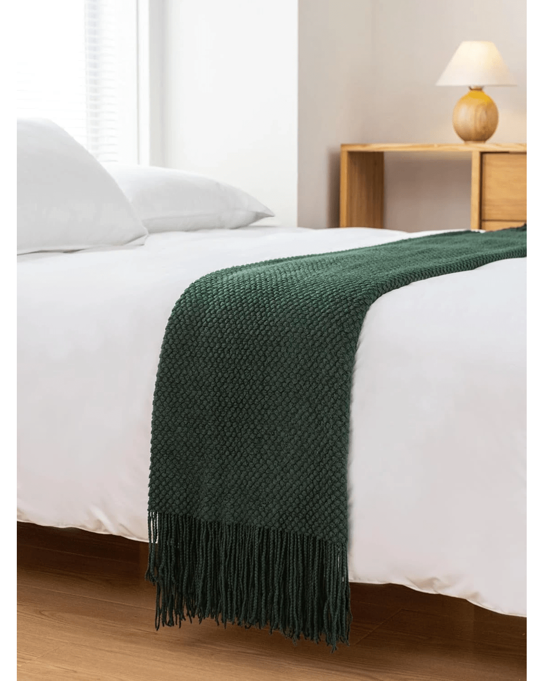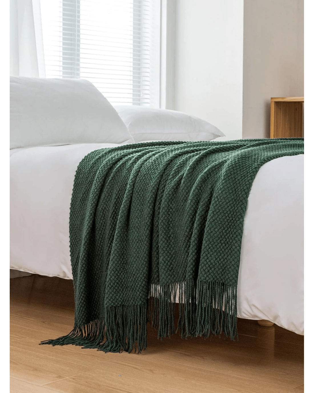 Sold by Gioia CasaGioia Casa Micro Plush Knitted Throw Blanket Soft Warm Lightweight - Forest Green