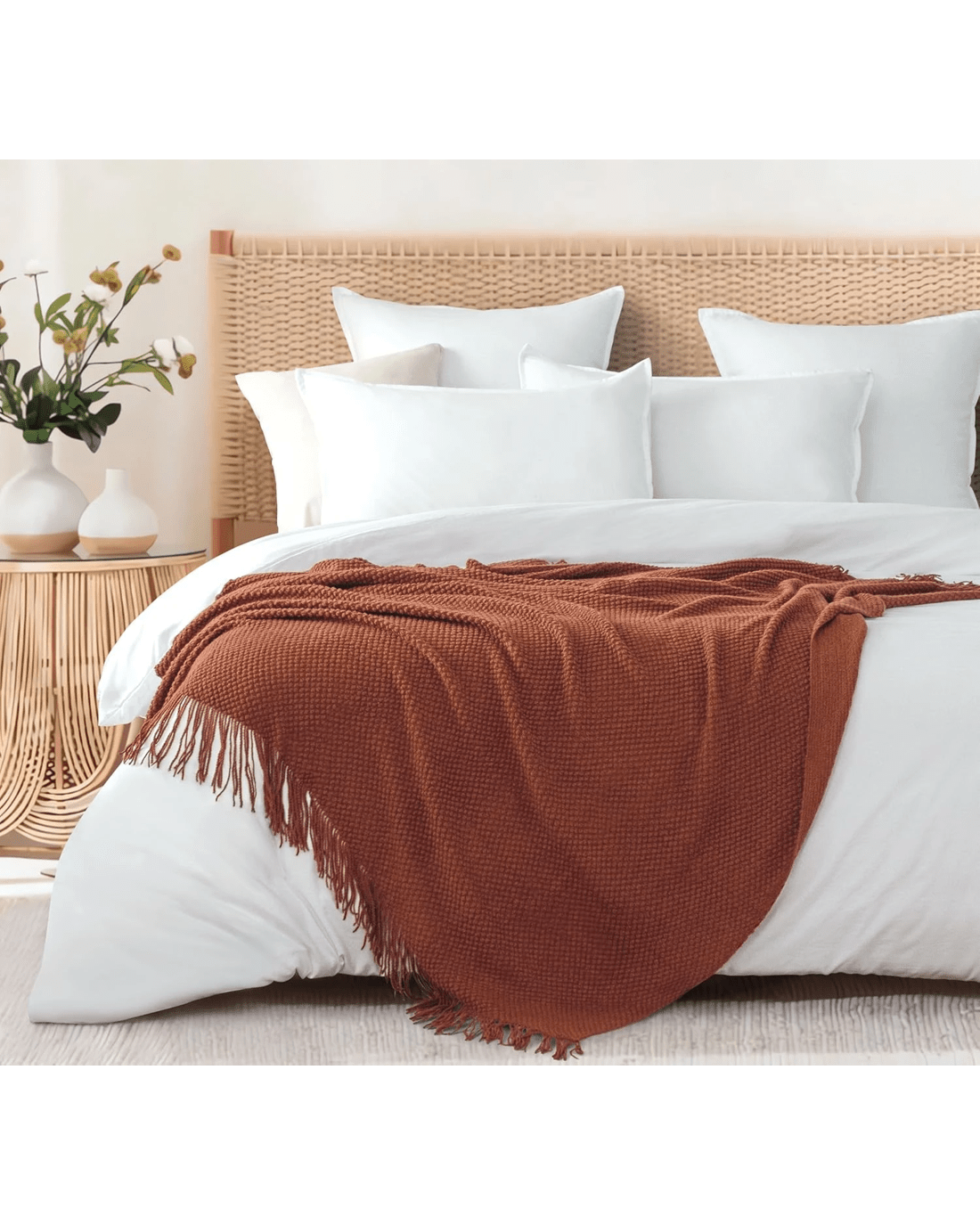 Sold by Gioia CasaGioia Casa Micro Plush Knitted Throw Blanket Soft Warm Lightweight - Terracotta