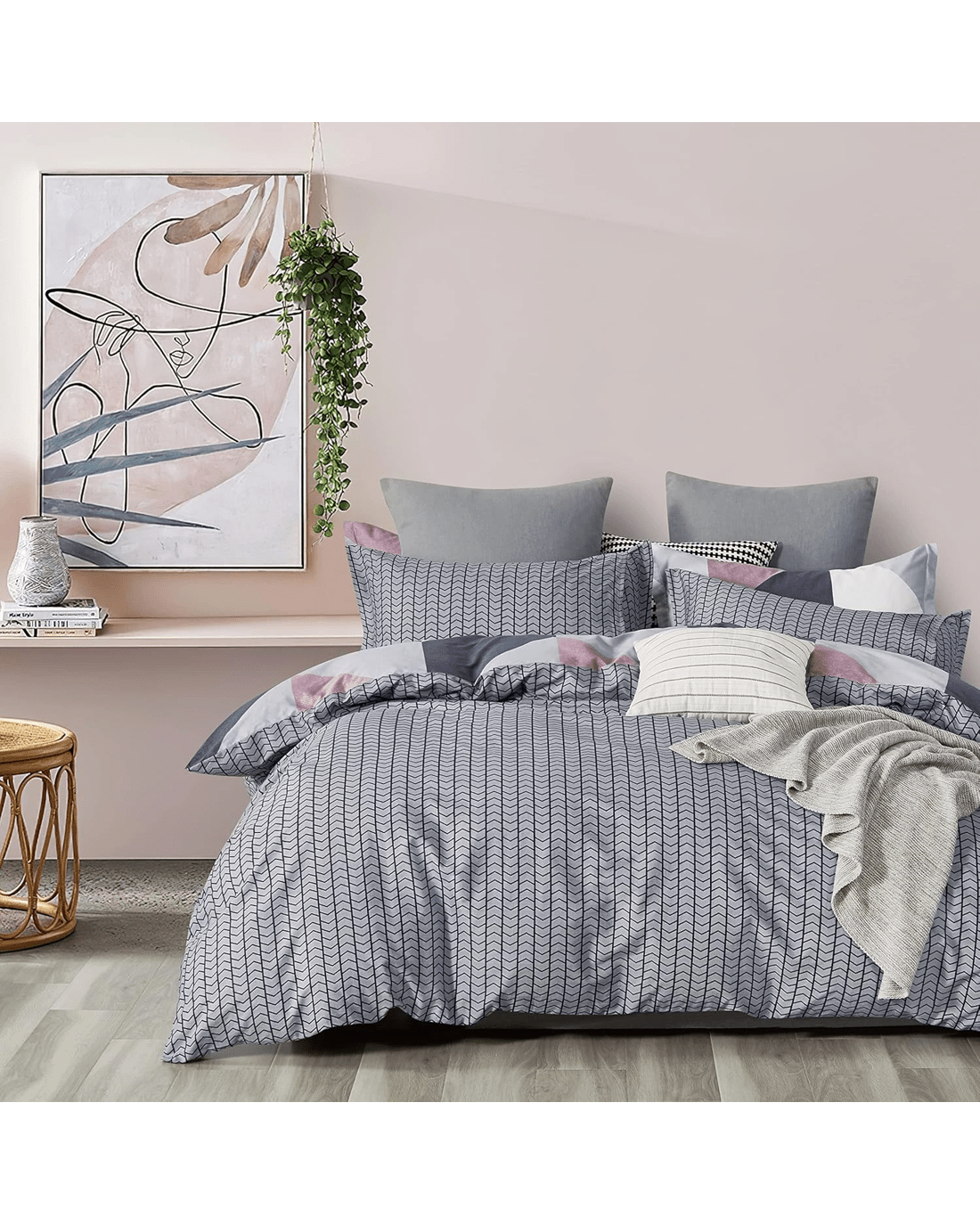 โข ๐ฅ๐ฒ๐๐ฒ๐ฟ๐๐ถ๐ฏ๐น๐ฒ ๐ฆ๐๐๐น๐ถ๐ป๐ด: Features two distinct designs in one set, making it easy to refresh your bedroom look whenever you like.
